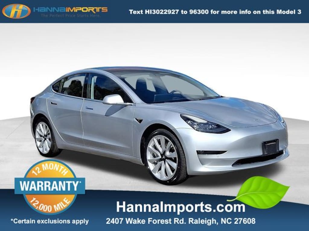 Why shop with Hanna Imports? We specialize in hand-selecting top-quality used cars, trucks, and SUVs for drivers across Raleigh, Durham, Cary, Chapel Hill, and the greater Triangle area of North Carolina. Our massive selection of 1,000+ vehicles on our Raleigh lot is carefully curated to include the most sought-after models, all priced below market value. We believe in transparency and efficiencyâ"our vehicles are aggressively priced from the start, which means no haggling, no hassle, and no wasted time. The price you see is our absolute best price. Whether you're coming from Wake Forest, Apex, Garner, or anywhere in central NC, weâre committed to making your car-buying experience smooth, affordable, and enjoyable. Come see why Hanna Imports is one of the most trusted used car dealerships in North Carolina! Used Tesla Model 3 in Raleigh. Used Tesla Model 3 in North Carolina, Model 3 Long Range, Exterior Parking Camera Rear, Fully automatic headlights, Garage door transmitter: Homelink, Genuine wood dashboard insert, Heated Front Bucket Seats, Heated rear seats, Lane Departure Warning System, Navigation System, Radio: FM w/Premium Audio System, Remote keyless entry, Synthetic Leather Seat Trim, 15 Speakers, 4-Wheel Disc Brakes, ABS brakes, Air Conditioning, Alloy wheels, Auto High-beam Headlights, Auto-dimming door mirrors, Auto-dimming Rear-View mirror, Automatic temperature control, Brake assist, Bumpers: body-color, Compass, Delay-off headlights, Driver door bin, Driver vanity mirror, Dual front impact airbags, Dual front side impact airbags, Electronic Stability Control, Four wheel independent suspension, Front anti-roll bar, Front Bucket Seats, Front Center Armrest, Front dual zone A/C, Front fog lights, Front reading lights, Heated door mirrors, Heated front seats, Illuminated entry, Knee airbag, Low tire pressure warning, Memory seat, Occupant sensing airbag, Outside temperature display, Overhead airbag, Passenger door bin, Passenger vanity mirror, Power door mirrors, Power driver seat, Power passenger seat, Power steering, Power windows, Radio data system, Rear reading lights, Rear seat center armrest, Rear window defroster, Security system, Speed control, Speed-sensing steering, Split folding rear seat, Steering wheel memory, Steering wheel mounted A/C controls, Steering wheel mounted audio controls, Telescoping steering wheel, Tilt steering wheel, Traction control, Trip computer, Variably intermittent wipers, and Wheels: 18" Aero.