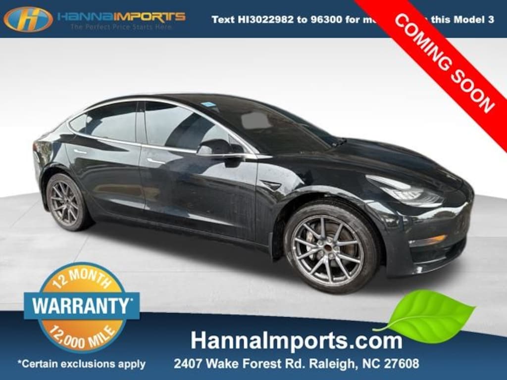 Why shop with Hanna Imports? We specialize in hand-selecting top-quality used cars, trucks, and SUVs for drivers across Raleigh, Durham, Cary, Chapel Hill, and the greater Triangle area of North Carolina. Our massive selection of 1,000+ vehicles on our Raleigh lot is carefully curated to include the most sought-after models, all priced below market value. We believe in transparency and efficiencyâ"our vehicles are aggressively priced from the start, which means no haggling, no hassle, and no wasted time. The price you see is our absolute best price. Whether you're coming from Wake Forest, Apex, Garner, or anywhere in central NC, weâre committed to making your car-buying experience smooth, affordable, and enjoyable. Come see why Hanna Imports is one of the most trusted used car dealerships in North Carolina! Used Tesla Model 3 in Raleigh. Used Tesla Model 3 in North Carolina, Model 3 Standard Range Plus, 4-Wheel Disc Brakes, 8 Speakers, ABS brakes, Air Conditioning, Alloy wheels, Auto High-beam Headlights, Auto-dimming door mirrors, Auto-dimming Rear-View mirror, Automatic temperature control, Brake assist, Bumpers: body-color, Compass, Delay-off headlights, Driver door bin, Driver vanity mirror, Dual front impact airbags, Dual front side impact airbags, Electronic Stability Control, Exterior Parking Camera Rear, Four wheel independent suspension, Front anti-roll bar, Front Bucket Seats, Front Center Armrest, Front dual zone A/C, Front fog lights, Front reading lights, Fully automatic headlights, Genuine wood dashboard insert, Heated door mirrors, Heated front seats, Illuminated entry, Knee airbag, Low tire pressure warning, Memory seat, Navigation System, Occupant sensing airbag, Outside temperature display, Overhead airbag, Passenger door bin, Passenger vanity mirror, Power door mirrors, Power driver seat, Power passenger seat, Power steering, Power windows, Premium Heated Front Bucket Seats, Premium Seat Trim, Radio data system, Radio: Upgraded Audio System, Rear reading lights, Rear seat center armrest, Rear window defroster, Remote keyless entry, Security system, Speed control, Speed-sensing steering, Split folding rear seat, Steering wheel memory, Steering wheel mounted A/C controls, Steering wheel mounted audio controls, Telescoping steering wheel, Tilt steering wheel, Traction control, Trip computer, Variably intermittent wipers, and Wheels: 18" Aero.