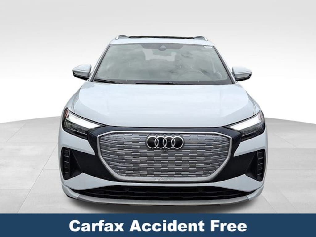 Recent Arrival! CARFAX One-Owner. Carfax Accident Free, Leather Seats, Bluetooth, *Multi Point Inspection*, Q4 e-tron Premium Plus quattro, Electric Motor, Glacier White, 8 Speakers, Adaptive Cruise Assist w/Lane Guidance, Alarm System w/Motion Sensor, Audi Advanced Key, Auto-Dimming Interior Mirror w/Compass, Auto-Dimming Power Folding Exterior Mirrors, Convenience Package, Dual Pane Acoustic Glass for Front Side Windows, Exterior Parking Camera Rear, Heated Front Seats, Heated Steering Wheel, LED Interior Lighting Plus Package, Power Front Passenger Seat, Power moonroof: Panoramic, Power Tailgate, Premium Plus, Projection Light in Exterior Mirrors, SiriusXM w/360L, Wireless Phone Charging Pad.