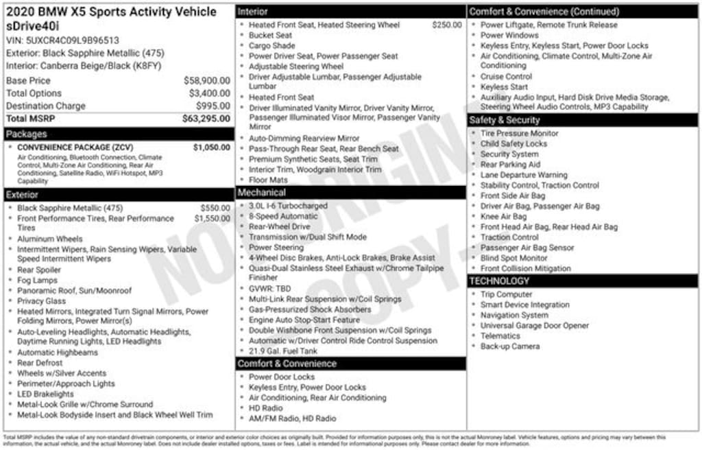 2020 BMW X5 sDrive40i Black Sapphire Metallic 21/26 City/Highway MPG