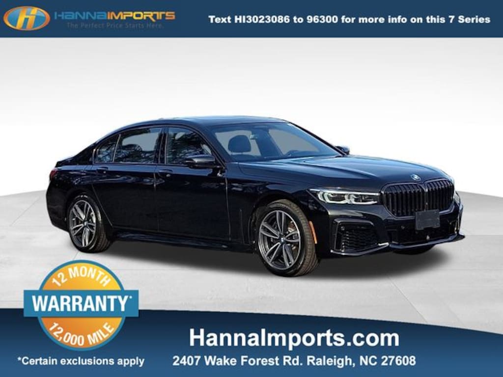 Why shop with Hanna Imports? We specialize in hand-selecting top-quality used cars, trucks, and SUVs for drivers across Raleigh, Durham, Cary, Chapel Hill, and the greater Triangle area of North Carolina. Our massive selection of 1,000+ vehicles on our Raleigh lot is carefully curated to include the most sought-after models, all priced below market value. We believe in transparency and efficiencyâ"our vehicles are aggressively priced from the start, which means no haggling, no hassle, and no wasted time. The price you see is our absolute best price. Whether you're coming from Wake Forest, Apex, Garner, or anywhere in central NC, weâre committed to making your car-buying experience smooth, affordable, and enjoyable. Come see why Hanna Imports is one of the most trusted used car dealerships in North Carolina! Used BMW 7 Series in Raleigh. Used BMW 7 Series in North Carolina, Connected Package Pro, Driving Assistance Professional Package (Active Driving Assistant Delete, Active Driving Assistant Pro, and Extended Traffic Jam Assistant), Executive Package (Ceramic Controls, Front Massaging Seats, Front Ventilated Seats, Instrument Panel w/Nappa Leather Finish, Panoramic Moonroof Delete, Panoramic Sky Lounge LED Roof, and Power Rear Sunshade & Rear Side Window Shades), M Sport Package (Aerodynamic Kit, Anthracite Headliner, Fineline Black Wood Trim, M Steering Wheel, Shadowline Exterior Trim, Wheels: 19" x 8.5" M Double-Spoke Style 647M, and Without Lines Designation Outside), M Sport Package (337), 750i xDrive, AWD, Black Leather, Navigation System, 16 Speakers, 4-Wheel Disc Brakes, ABS brakes, Adaptive suspension, Air Conditioning, Alloy wheels, AM/FM radio: SiriusXM, Anti-whiplash front head restraints, Apple CarPlay & Android Auto Compatibility, Auto High-beam Headlights, Auto tilt-away steering wheel, Auto-dimming door mirrors, Auto-dimming Rear-View mirror, Auto-leveling suspension, Automatic temperature control, Brake assist, Bumpers: body-color, ConnectedDrive Services, Delay-off headlights, Door auto-latch, Drive Recorder, Driver door bin, Driver vanity mirror, Dual front impact airbags, Dual front side impact airbags, Electronic Stability Control, Emergency communication system: BMW Assist eCall, Extended Shadowline Trim, Four wheel independent suspension, Front & Rear Heated Seats, Front anti-roll bar, Front Bucket Seats, Front Center Armrest, Front dual zone A/C, Front reading lights, Fully automatic headlights, Garage door transmitter, Genuine wood console insert, Genuine wood dashboard insert, Genuine wood door panel insert, Gesture Control, harman/kardon Surround Sound System, harman/kardon® Speakers, Head restraints memory, Heads-Up Display, Heated door mirrors, Heated front seats, Heated Front Seats, Armrests & Steering Wheel, Heated steering wheel, Illuminated entry, Knee airbag, Leather Shift Knob, Leather steering wheel, Low tire pressure warning, M Sport Brakes w/Black Calipers, Memory seat, Multi-Contour Seats, Occupant sensing airbag, Outside temperature display, Overhead airbag, Overhead console, Panic alarm, Passenger door bin, Passenger vanity mirror, Perforated Nappa Leather Upholstery, Power adjustable front head r