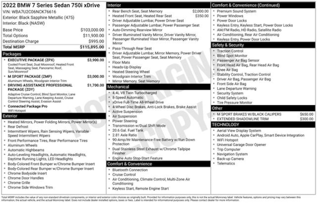 2022 BMW 7 Series 750i xDrive Black Sapphire Metallic