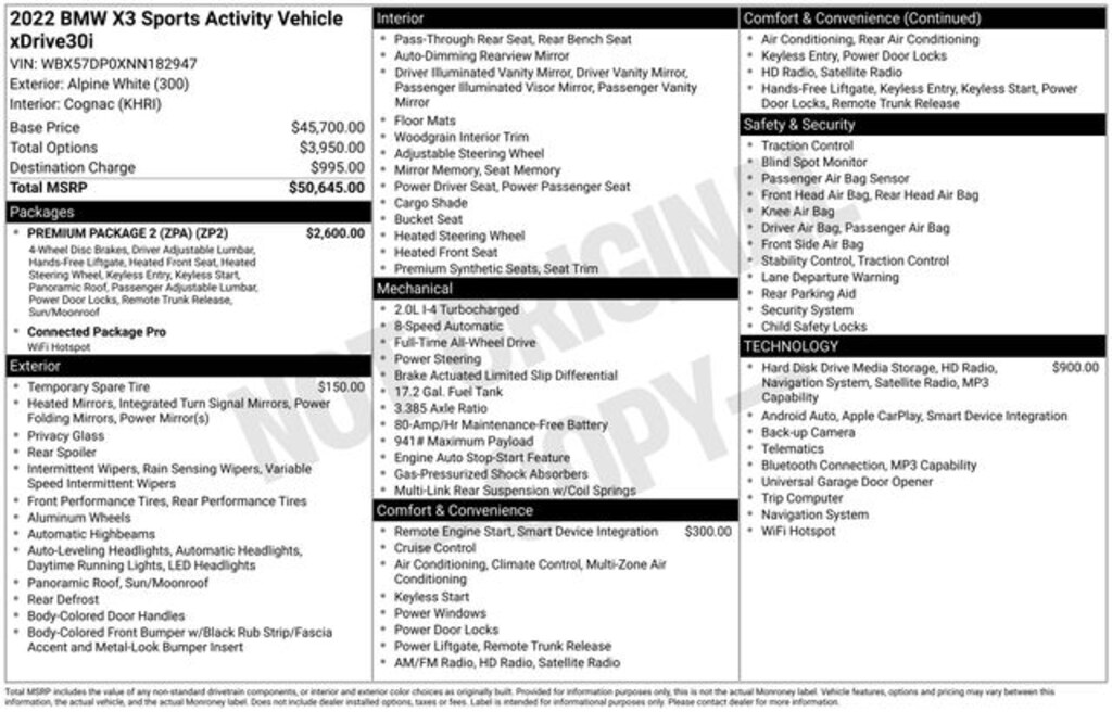 2022 BMW X3 xDrive30i Alpine White 21/28 City/Highway MPG