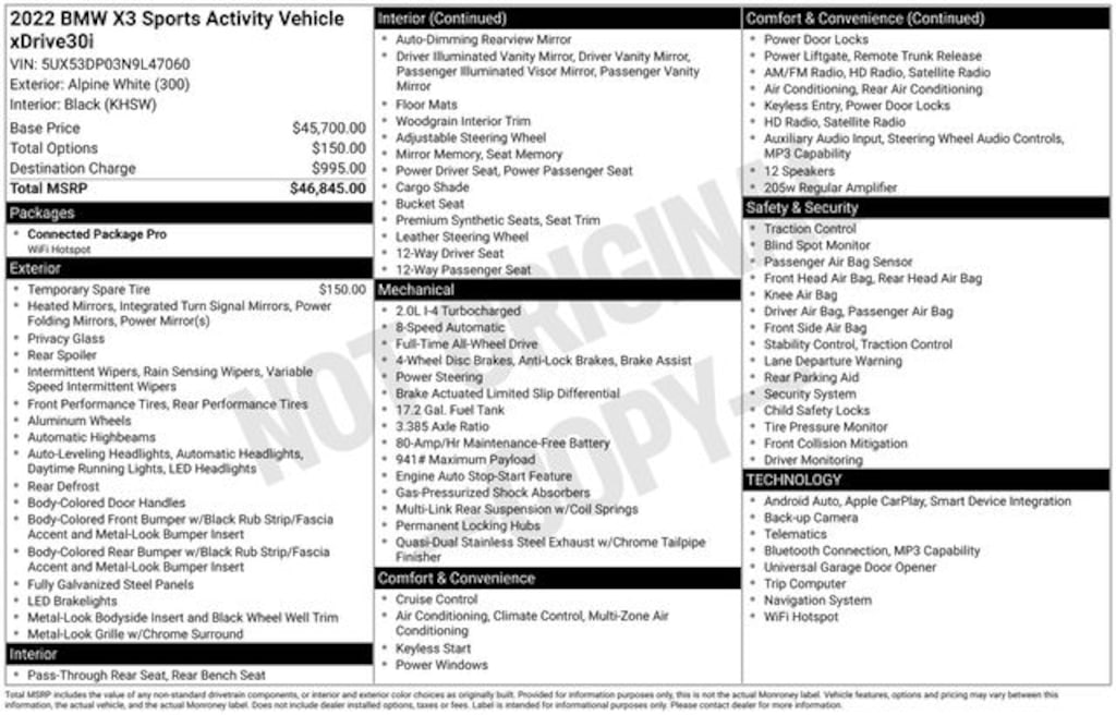 2022 BMW X3 xDrive30i Alpine White 21/28 City/Highway MPG