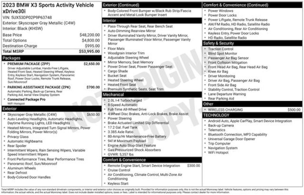 Why shop with Hanna Imports? We specialize in hand-selecting top-quality used cars, trucks, and SUVs for drivers across Raleigh, Durham, Cary, Chapel Hill, and the greater Triangle area of North Carolina. Our massive selection of 1,000+ vehicles on our Raleigh lot is carefully curated to include the most sought-after models, all priced below market value. We believe in transparency and efficiencyâ"our vehicles are aggressively priced from the start, which means no haggling, no hassle, and no wasted time. The price you see is our absolute best price. Whether you're coming from Wake Forest, Apex, Garner, or anywhere in central NC, weâre committed to making your car-buying experience smooth, affordable, and enjoyable. Come see why Hanna Imports is one of the most trusted used car dealerships in North Carolina! Used BMW X3 in Raleigh. Used BMW X3 in North Carolina, Connected Package Pro, 8-Speed Automatic Sport, 12 Speakers, 3.385 Axle Ratio, 4-Wheel Disc Brakes, ABS brakes, Active Park Distance Control, Air Conditioning, Alloy wheels, AM/FM Radio, AM/FM radio: SiriusXM, Apple CarPlay & Android Auto Compatibility, Auto High-beam Headlights, Auto-dimming door mirrors, Auto-dimming Rear-View mirror, Automatic temperature control, BMW Assist eCall, BMW TeleServices, Brake assist, Bumpers: body-color, Comfort Access Keyless Entry, ConnectedDrive Services, Delay-off headlights, Driver door bin, Driver Lumbar Support, Driver vanity mirror, Dual front impact airbags, Dual front side impact airbags, Electronic Stability Control, Emergency communication system: BMW Assist eCall, Enhanced USB & Bluetooth w/Smartphone Integration, Exterior Parking Camera Rear, Four wheel independent suspension, Front anti-roll bar, Front Bucket Seats, Front Center Armrest, Front dual zone A/C, Front reading lights, Fully automatic headlights, Garage door transmitter, Genuine wood dashboard insert, Genuine wood door panel insert, Heated door mirrors, Heated Front Seats, Heated Steering Wheel, Hi-Fi Sound System, Illuminated entry, Knee airbag, Live Cockpit Pro w/Navigation, Low tire pressure warning, Memory seat, Navigation, Navigation System, Occupant sensing airbag, Outside temperature display, Overhead airbag, Panic alarm, Panoramic Moonroof, Parking Assistant Plus, Passenger door bin, Passenger vanity mirror, Perforated SensaTec Upholstery, Power door mirrors, Power driver seat, Power Front Seats, Power Liftgate, Power passenger seat, Power steering, Power windows, Radio data system, Rain sensing wipers, Rear air conditioning, Rear anti-roll bar, Rear reading lights, Rear seat center armrest, Rear window defroster, Rear window wiper, Rear-View Camera, Remote Engine Start, Remote keyless entry, Security system, SiriusXM Satellite Radio, Speed control, Speed-sensing steering, Speed-Sensitive Wipers, Split folding rear seat, Spoiler, Sport Seats, Sport steering wheel, Steering wheel mounted audio controls, Surround View w/3D View, Tachometer, Telescoping steering wheel, Tilt steering wheel, Traction control, Trip computer, Turn signal indicator mirrors, Variably intermittent wipers, Wheels: 19" x 7.5" Y-Spoke (Style 693), WiFi Hotspot, and Wireless Charging.