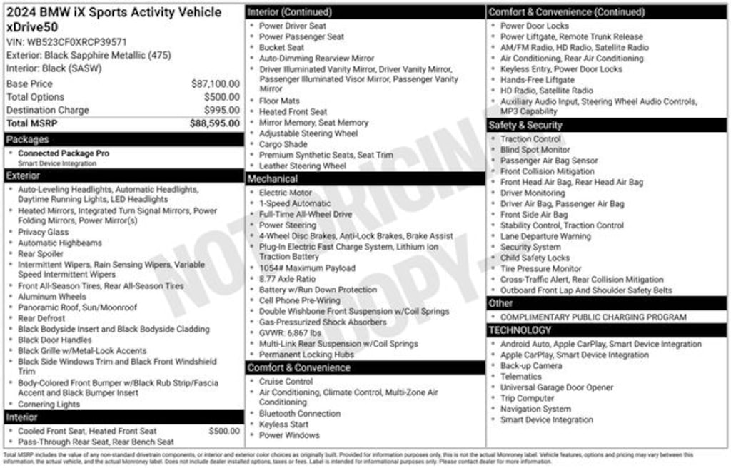 2024 BMW iX xDrive50 Black Sapphire Metallic 83/82 City/Highway MPG