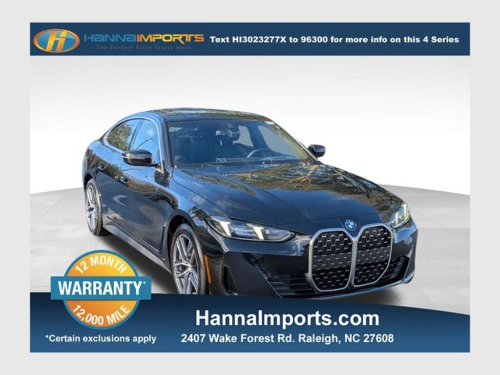Why shop with Hanna Imports? We specialize in hand-selecting top-quality used cars, trucks, and SUVs for drivers across Raleigh, Durham, Cary, Chapel Hill, and the greater Triangle area of North Carolina. Our massive selection of 1,000+ vehicles on our Raleigh lot is carefully curated to include the most sought-after models, all priced below market value. We believe in transparency and efficiencyâ"our vehicles are aggressively priced from the start, which means no haggling, no hassle, and no wasted time. The price you see is our absolute best price. Whether you're coming from Wake Forest, Apex, Garner, or anywhere in central NC, weâre committed to making your car-buying experience smooth, affordable, and enjoyable. Come see why Hanna Imports is one of the most trusted used car dealerships in North Carolina! Used BMW 4 Series in Raleigh. Used BMW 4 Series in North Carolina, Connected Package Pro, Premium Package (BMW Curved Display w/HUD, harman/kardon Surround Sound System, and Heated Steering Wheel), 430i Gran Coupe, Apple CarPlay & Android Auto Compatibility, Exterior Parking Camera Rear, Navigation, Navigation System, Power Liftgate, Power moonroof, 10 Speakers, 4-Wheel Disc Brakes, ABS brakes, Air Conditioning, Alloy wheels, AM/FM radio: SiriusXM, Audio memory, Auto High-beam Headlights, Auto-dimming door mirrors, Auto-dimming Rear-View mirror, Automatic temperature control, BMW Assist eCall, BMW TeleServices, Brake assist, Bumpers: body-color, Compass, ConnectedDrive Services, Delay-off headlights, Driver door bin, Driver vanity mirror, Dual front impact airbags, Dual front side impact airbags, Electronic Stability Control, Emergency communication system: BMW Assist eCall, Four wheel independent suspension, Front anti-roll bar, Front Bucket Seats, Front Center Armrest, Front dual zone A/C, Front reading lights, Fully automatic headlights, Garage door transmitter, Genuine wood console insert, Genuine wood dashboard insert, Heated door mirrors, Heated Front Seats, Heated front seats, Hi-Fi Sound System, HVAC memory, Illuminated entry, Knee airbag, Leather steering wheel, Low tire pressure warning, Lumbar Support, Memory seat, Occupant sensing airbag, Outside temperature display, Overhead airbag, Overhead console, Panic alarm, Passenger door bin, Passenger vanity mirror, Perforated Sensatec Upholstery, Personal eSIM 5G, Power door mirrors, Power driver seat, Power Front Seats, Power passenger seat, Power steering, Power windows, Radio data system, Radio: AM/FM Audio System, Rain sensing wipers, Rear anti-roll bar, Rear reading lights, Rear seat center armrest, Rear window defroster, Remote keyless entry, Security system, SiriusXM Satellite Radio w/1-Year Subscription, Speed control, Speed-sensing steering, Speed-Sensitive Wipers, Split folding rear seat, Sport Seats, Sport steering wheel, Steering wheel mounted audio controls, Tachometer, Telescoping steering wheel, Tilt steering wheel, Traction control, Trip computer, Turn signal indicator mirrors, Variably intermittent wipers, Wheels: 18" x 8.5" Dual-Spoke Bicolor, Widescreen Display, and Wireless Device Charging.