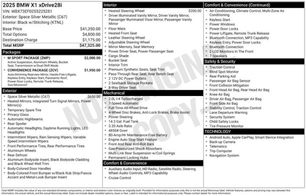 2025 BMW X1 xDrive28i 24/33 City/Highway MPG