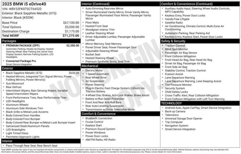 Why shop with Hanna Imports? We specialize in hand-selecting top-quality used cars, trucks, and SUVs for drivers across Raleigh, Durham, Cary, Chapel Hill, and the greater Triangle area of North Carolina. Our massive selection of 1,000+ vehicles on our Raleigh lot is carefully curated to include the most sought-after models, all priced below market value. We believe in transparency and efficiencyâ"our vehicles are aggressively priced from the start, which means no haggling, no hassle, and no wasted time. The price you see is our absolute best price. Whether you're coming from Wake Forest, Apex, Garner, or anywhere in central NC, weâre committed to making your car-buying experience smooth, affordable, and enjoyable. Come see why Hanna Imports is one of the most trusted used car dealerships in North Carolina! Used BMW i5 in Raleigh. Used BMW i5 in North Carolina, Connected Package Pro, 12 Speakers, 4-Wheel Disc Brakes, ABS brakes, Air Conditioning, Alloy wheels, Apple CarPlay & Android Auto Compatibility, Auto tilt-away steering wheel, Auto-dimming door mirrors, Auto-dimming Rear-View mirror, Auto-leveling suspension, Automatic temperature control, BMW Assist eCall, BMW TeleServices, Brake assist, Bumpers: body-color, ConnectedDrive Services, Delay-off headlights, Driver door bin, Driver vanity mirror, Dual front impact airbags, Dual front side impact airbags, Electronic Stability Control, Emergency communication system: BMW Assist eCall, Exterior Parking Camera Rear, Four wheel independent suspension, Front anti-roll bar, Front Bucket Seats, Front Center Armrest, Front dual zone A/C, Front reading lights, Fully automatic headlights, Garage door transmitter, Genuine wood dashboard insert, Genuine wood door panel insert, harman/kardon® Sound System, harman/kardon® Speakers, Head restraints memory, Heated door mirrors, Heated Front Seats, Heated front seats, Illuminated entry, Leather steering wheel, Low tire pressure warning, Lumbar Support, Memory seat, Navigation, Navigation System, Occupant sensing airbag, Outside temperature display, Overhead airbag, Panic alarm, Passenger door bin, Passenger vanity mirror, Perforated & Quilted Veganza Upholstery, Power adjustable front head restraints, Power door mirrors, Power driver seat, Power Front Seats, Power moonroof, Power passenger seat, Power steering, Power windows, Radio data system, Radio: FM Audio System, Rain sensing wipers, Rear anti-roll bar, Rear reading lights, Rear seat center armrest, Rear window defroster, Remote keyless entry, Security system, SiriusXM Satellite Radio, Speed control, Speed-sensing steering, Speed-Sensitive Wipers, Split folding rear seat, Sport Seats, Steering wheel memory, Steering wheel mounted audio controls, Telescoping steering wheel, Tilt steering wheel, Traction control, Trip computer, Turn signal indicator mirrors, Variably intermittent wipers, and Wheels: 19" x 8.5" Aero Bicolor Grey.
