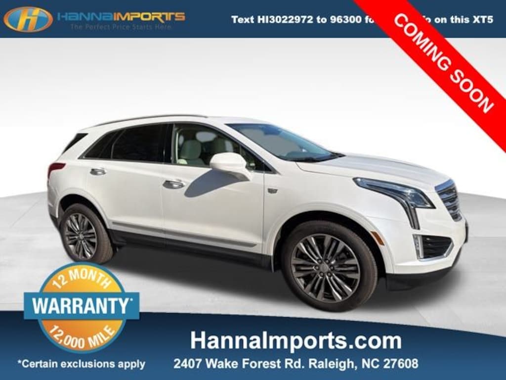 Why shop with Hanna Imports? We specialize in hand-selecting top-quality used cars, trucks, and SUVs for drivers across Raleigh, Durham, Cary, Chapel Hill, and the greater Triangle area of North Carolina. Our massive selection of 1,000+ vehicles on our Raleigh lot is carefully curated to include the most sought-after models, all priced below market value. We believe in transparency and efficiencyâ"our vehicles are aggressively priced from the start, which means no haggling, no hassle, and no wasted time. The price you see is our absolute best price. Whether you're coming from Wake Forest, Apex, Garner, or anywhere in central NC, weâre committed to making your car-buying experience smooth, affordable, and enjoyable. Come see why Hanna Imports is one of the most trusted used car dealerships in North Carolina! Used Cadillac XT5 in Raleigh. Used Cadillac XT5 in North Carolina, Interior Protection Package (LPO) (All-Weather Cargo Tray (LPO) and All-Weather Floor Mats), Premium Luxury Package 1SF (155 Amp Alternator, Body-Color Heated Power-Adjustable Outside Mirrors, Front & Rear Park Assist, Low Speed Forward Automatic Braking, and Teen Driver), Apple CarPlay/Android Auto, Bose Studio Surround Sound w/14 Speakers, Exterior Parking Camera Rear, Heated front seats, Heated rear seats, Leather Seating Surfaces w/Mini Perforated Inserts, Navigation System, Power Liftgate, Power moonroof: UltraView, Radio: Cadillac User Experience w/Embedded Nav, SiriusXM Radio, Ventilated Driver & Front Passenger Seats, 14 Speakers, 2-Way Power Driver Lumbar Control Seat Adjuster, 2-Way Power Passenger Lumbar Control Seat Adjuster, 3.20 Axle Ratio, 4-Wheel Disc Brakes, 8-Way Power Front Passenger Seat Adjuster, ABS brakes, Adaptive suspension, Air Conditioning, Alloy wheels, AM/FM radio: SiriusXM, Auto High-beam Headlights, Auto-dimming door mirrors, Auto-dimming Rear-View mirror, Automatic temperature control, Bodyside moldings, Brake assist, Bumpers: body-color, Compass, Delay-off headlights, Driver & Front Passenger Heated Seats, Driver door bin, Driver vanity mirror, Dual front impact airbags, Dual front side impact airbags, Electronic Stability Control, Emergency communication system: OnStar and Cadillac connected services capable, Four wheel independent suspension, Front anti-roll bar, Front Bucket Seats, Front Center Armrest, Front dual zone A/C, Front License Plate Bracket, Front reading lights, Fully automatic headlights, Garage door transmitter, Heated door mirrors, Heated Rear Outboard Seating Positions, Heated steering wheel, Illuminated entry, Knee airbag, Leather steering wheel, Low tire pressure warning, Memory seat, Occupant sensing airbag, Outside temperature display, Overhead airbag, Overhead console, Panic alarm, Passenger door bin, Passenger vanity mirror, Performance Suspension, Power door mirrors, Power driver seat, Power passenger seat, Power steering, Power windows, Radio data system, Rain sensing wipers, Rear air conditioning, Rear anti-roll bar, Rear reading lights, Rear seat center armrest, Rear window defroster, Rear window wiper, Remote keyless entry, Roof rack: rails only, Speed control, Speed-sensing steering, Split