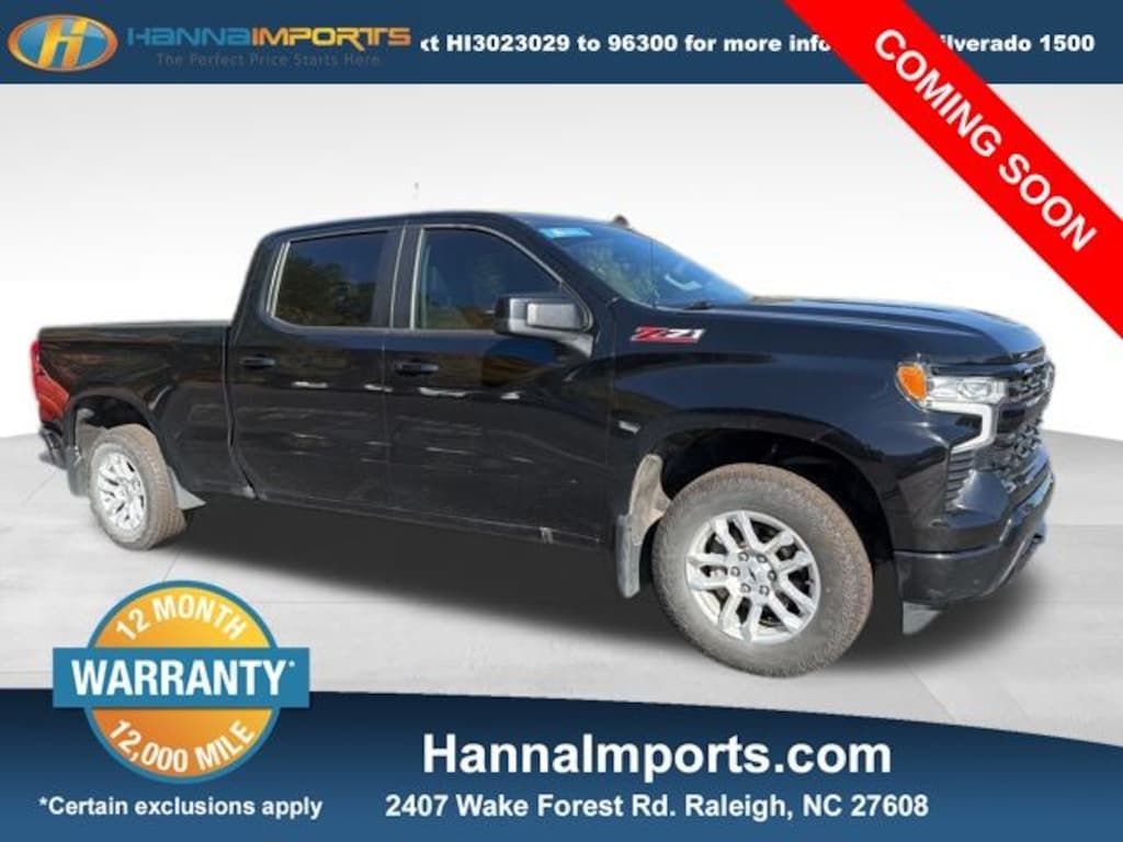 Why shop with Hanna Imports? We specialize in hand-selecting top-quality used cars, trucks, and SUVs for drivers across Raleigh, Durham, Cary, Chapel Hill, and the greater Triangle area of North Carolina. Our massive selection of 1,000+ vehicles on our Raleigh lot is carefully curated to include the most sought-after models, all priced below market value. We believe in transparency and efficiencyâ"our vehicles are aggressively priced from the start, which means no haggling, no hassle, and no wasted time. The price you see is our absolute best price. Whether you're coming from Wake Forest, Apex, Garner, or anywhere in central NC, weâre committed to making your car-buying experience smooth, affordable, and enjoyable. Come see why Hanna Imports is one of the most trusted used car dealerships in North Carolina! Used Chevrolet Silverado 1500 in Raleigh. Used Chevrolet Silverado 1500 in North Carolina, Convenience Package (10-Way Power Driver Seat w/Lumbar, 120-Volt Instrument Panel Power Outlet, Dual Rear USB Ports (Charge Only), Dual-Zone Automatic Climate Control, Electric Rear-Window Defogger, Heated Driver & Front Outboard Passenger Seats, Heated Steering Wheel, Keyless Open & Start, Remote Vehicle Starter System, Theft Deterrent System (Unauthorized Entry), Wrapped Steering Wheel, and 120-Volt Bed Mounted Power Outlet), Preferred Equipment Group 1SP (12.3" Multicolor Reconfigurable Digital Display, 6-Speaker Audio System, All-Star Edition, Auto-Locking Rear Differential, Bluetooth® For Phone, Color-Keyed Carpeting Floor Covering, Compass, Deep-Tinted Glass, Electrical Steering Column Lock, Electronic Cruise Control, EZ Lift Power Lock & Release Tailgate, Front Frame-Mounted Black Recovery Hooks, Front LED Fog Lamps, Front Rubberized Vinyl Floor Mats, HD Rear Vision Camera, Heated Power-Adjustable Outside Mirrors, High Gloss Black Mirror Caps, Inside Rear-View Mirror w/Tilt, LED Cargo Area Lighting, OnStar & Chevrolet Connected Services Capable, Power Front Windows w/Driver Express Up/Down, Power Front Windows w/Passenger Express Down, Power Rear Windows w/Express Down, Rear 60/40 Folding Bench Seat (Folds Up), Rear Rubberized-Vinyl Floor Mats, SiriusXM w/360L, Standard Tailg