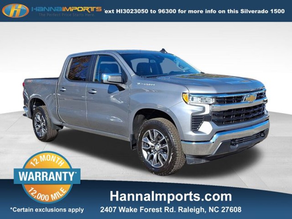 Why shop with Hanna Imports? We specialize in hand-selecting top-quality used cars, trucks, and SUVs for drivers across Raleigh, Durham, Cary, Chapel Hill, and the greater Triangle area of North Carolina. Our massive selection of 1,000+ vehicles on our Raleigh lot is carefully curated to include the most sought-after models, all priced below market value. We believe in transparency and efficiencyâ"our vehicles are aggressively priced from the start, which means no haggling, no hassle, and no wasted time. The price you see is our absolute best price. Whether you're coming from Wake Forest, Apex, Garner, or anywhere in central NC, weâre committed to making your car-buying experience smooth, affordable, and enjoyable. Come see why Hanna Imports is one of the most trusted used car dealerships in North Carolina! Used Chevrolet Silverado 1500 in Raleigh. Used Chevrolet Silverado 1500 in North Carolina, Convenience Package (10-Way Power Driver Seat w/Lumbar, 120-Volt Interior Power Outlet, Dual Rear USB Ports (Charge Only), Dual-Zone Automatic Climate Control, Heated Driver & Front Outboard Passenger Seats, Heated Steering Wheel, Keyless Open & Start, Wrapped Steering Wheel, and 120-Volt Bed Mounted Power Outlet), High Capacity Suspension Package, Standard Suspension Package, Trailering Package (Hitch Guidance), Silverado 1500 LT, 8-Speed Automatic, 4WD, Black Cloth, 12.3" Multicolor Reconfigurable Digital Display, 3.42 Rear Axle Ratio, 4-Wheel Disc Brakes, 40/20/40 Front Split-Bench Seat, 6 Speakers, 6-Speaker Audio System, ABS brakes, Air Conditioning, All-Star Edition, Alloy wheels, AM/FM radio: SiriusXM with 360L, Auto High-beam Headlights, Auto-Locking Rear Differential, Automatic Emergency Braking, Automatic temperature control, Bluetooth® For Phone, Brake assist, Bumpers: chrome, Chevrolet Connected Access Capable, Chrome Mirror Caps, Cloth Seat Trim, Color-Keyed Carpeting Floor Covering, Compass, Deep-Tinted Glass, Delay-off headlights, Driver door bin, Driver vanity mirror, Dual front impact airbags, Dual front side impact airbags, Electric Rear-Window Defogger, Electrical Steering Column Lock, Electronic Cruise Control, Electronic Stability Control, Following Distance Indicator, Forward Collision Alert, Front anti-roll bar, Front Center Armrest w/Storage, Front dual zone A/C, Front Frame-Mounted Black Recovery Hooks, Front Pedestrian Braking, Front reading lights, Front wheel independent suspension, Fully automatic headlights, HD Rear Vision Camera, Heated door mirrors, Heated front seats, Heated steering wheel, Illuminated entry, IntelliBeam Automatic High Beam On/Off, Lane Keep Assist w/Lane Departure Warning, LED Cargo Area Lighting, Low tire pressure warning, Occupant sensing airbag, OnStar & Chevrolet Connected Services Capable, Outside temperature display, Overhead airbag, Overhead console, Panic alarm, Passenger door bin, Passenger vanity mirror, Power door mirrors, Power driver seat, Power Front Windows w/Driver Express Up/Down, Power Front Windows w/Passenger Express Down, Power Rear Windows w/Express Down, Power steering, Power windows, Premium audio system: Chevrolet Infotainment 3 Premium, Radio data system, Radio: Chevrolet Infotainment 3 Premium System, Rear 60/40 Folding Bench Seat (Folds Up), Rear reading lights, Rear step bumper, Rear window defroster, Remote keyless entry, Remote Vehicle Starter System, Security system, SiriusXM w/360L, Speed cont