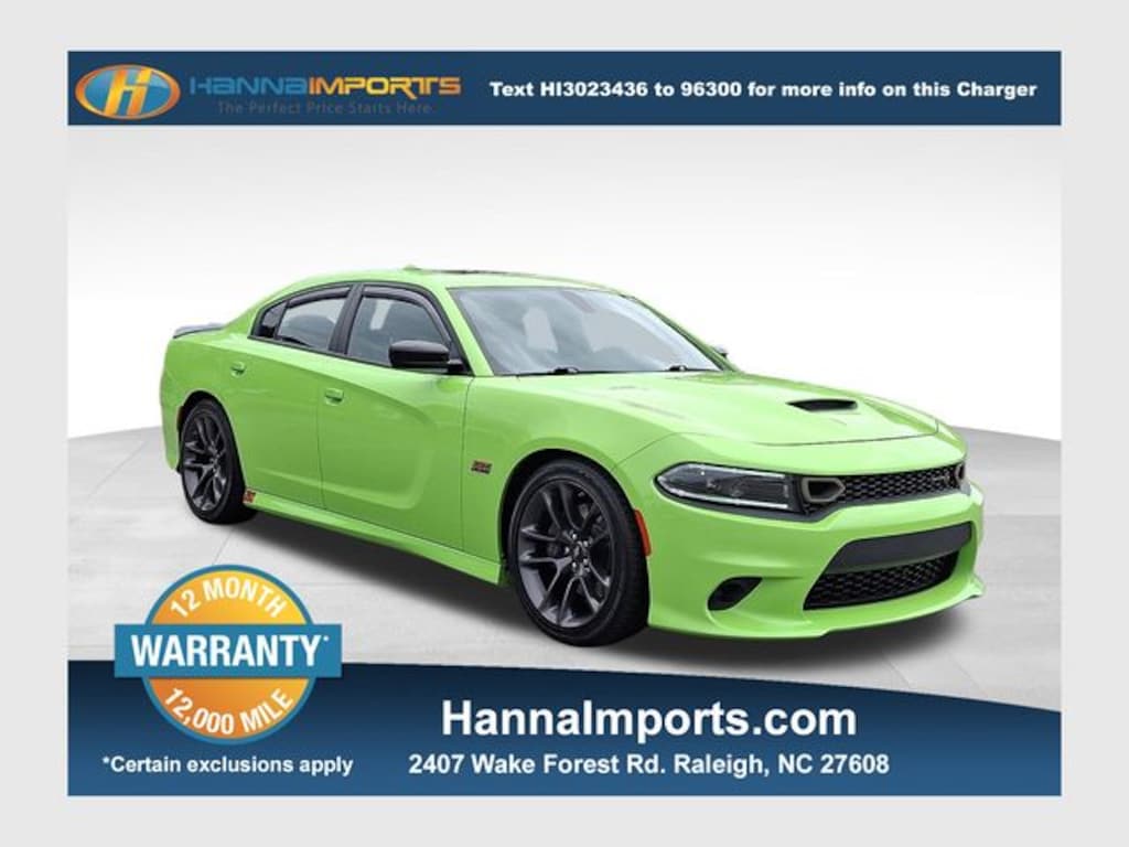 Why shop with Hanna Imports? We specialize in hand-selecting top-quality used cars, trucks, and SUVs for drivers across Raleigh, Durham, Cary, Chapel Hill, and the greater Triangle area of North Carolina. Our massive selection of 1,000+ vehicles on our Raleigh lot is carefully curated to include the most sought-after models, all priced below market value. We believe in transparency and efficiencyâ"our vehicles are aggressively priced from the start, which means no haggling, no hassle, and no wasted time. The price you see is our absolute best price. Whether you're coming from Wake Forest, Apex, Garner, or anywhere in central NC, weâre committed to making your car-buying experience smooth, affordable, and enjoyable. Come see why Hanna Imports is one of the most trusted used car dealerships in North Carolina! Used Dodge Charger in Raleigh. Used Dodge Charger in North Carolina, Quick Order Package 21W Scat Pack, Charger R/T Scat Pack, SRT HEMI 6.4L V8 MDS, Black Cloth, Heated front seats, ParkView Rear Back-Up Camera, Power Sunroof, Remote keyless entry, 1-Yr SiriusXM Guardian Trial, 2-Piece Shark Fin Antenna, 4-Wheel Disc Brakes, 4G LTE Wi-Fi Hot Spot, 6 Speakers, 8.4" Touchscreen Display, ABS brakes, Air Conditioning, Alloy wheels, AM/FM radio: SiriusXM, Anti-whiplash front head restraints, Apple CarPlay, Apple CarPlay/Android Auto, Auto-dimming Rear-View mirror, Automatic temperature control, Brake assist, Bumpers: body-color, Cloth Performance Seats w/Heat, Compass, Delay-off headlights, Driver door bin, Driver vanity mirror, Dual front impact airbags, Dual front side impact airbags, Electronic Stability Control, Emergency communication system: SiriusXM Guardian, For Details, Visit DriveUconnect.com, Four wheel independent suspension, Front anti-roll bar, Front Bucket Seats, Front Center Armrest, Front dual zone A/C, Front fog lights, Front reading lights, Fully automatic headlights, Garage door transmitter: HomeLink, Google Android Auto, GPS Antenna Input, HD Radio, Heated door mirrors, Heated Front Seats, Heated steering wheel, Illuminated entry, Integrated Center Stack Radio, Integrated Voice Command w/Bluetooth, Knee airbag, Leather Shift Knob, Low tire pressure warning, Media Hub (2 USB, AUX), Occupant sensing airbag, Outside temperature display, Overhead airbag, Overhead console, Panic alarm, Passenger door bin, Passenger vanity mirror, Power 2-Way Driver Lumbar Adjust, Power door mirrors, Power driver seat, Power steering, Power windows, Radio: Uconnect 4C w/8.4" Display, Rear anti-roll bar, Rear Armrest w/Cupholder Seat, Rear reading lights, Rear seat center armrest, Rear window defroster, Security system, Speed control, Speed-Sensitive Wipers, Split folding rear seat, Spoiler, Sport steering wheel, Steering wheel mounted audio controls, Tachometer, Telescoping steering wheel, Tilt steering wheel, Traction control, Trip computer, USB Host Flip, Variably intermittent wipers, and Wheels: 20" x 9" Lo Gloss Granite CrystaL.