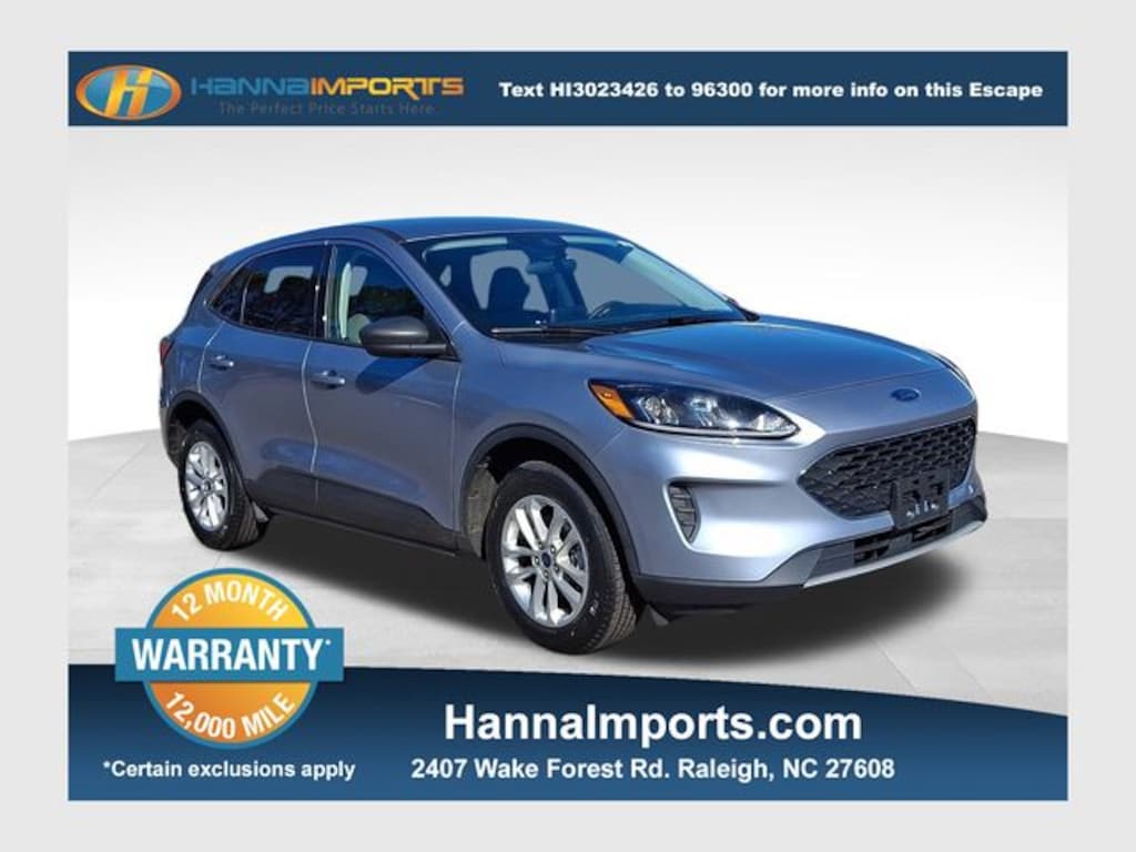 Why shop with Hanna Imports? We specialize in hand-selecting top-quality used cars, trucks, and SUVs for drivers across Raleigh, Durham, Cary, Chapel Hill, and the greater Triangle area of North Carolina. Our massive selection of 1,000+ vehicles on our Raleigh lot is carefully curated to include the most sought-after models, all priced below market value. We believe in transparency and efficiencyâ"our vehicles are aggressively priced from the start, which means no haggling, no hassle, and no wasted time. The price you see is our absolute best price. Whether you're coming from Wake Forest, Apex, Garner, or anywhere in central NC, weâre committed to making your car-buying experience smooth, affordable, and enjoyable. Come see why Hanna Imports is one of the most trusted used car dealerships in North Carolina! Used Ford Escape in Raleigh. Used Ford Escape in North Carolina, Cold Weather Package (Electronic Automatic Temperature Control (EATC), Heated & Premium Wrapped Steering Wheel, Heated Front Row Seats, Heated Sideview Mirrors, and Remote Start System w/86C), Convenience Package (Power Liftgate, 8-Way Power Driver Seat, Dual-Zone Electronic Automatic Temperature Control, Fold-Down Rear Center Armrest w/2 Cupholders, and Halogen Projector Headlamps w/LED Signature), Equipment Group 200A, Escape SE, AWD, Exterior Parking Camera Rear, 3.81 Axle Ratio, 4-Wheel Disc Brakes, 4G LTE Wi-Fi Hotspot Removal, 6 Speakers, ABS brakes, Air Conditioning, Alloy wheels, AM/FM radio: SiriusXM, AM/FM Stereo, Auto High-beam Headlights, Brake assist, Bumpers: body-color, Compass, Delay-off headlights, Driver door bin, Driver vanity mirror, Dual front impact airbags, Dual front side impact airbags, Electronic Stability Control, Emergency communication system: SYNC 3 911 Assist, FordPass Connect, Four wheel independent suspension, Front anti-roll bar, Front Bucket Seats, Front Center Armrest, Front reading lights, Fully automatic headlights, Illuminated entry, Knee airbag, Low tire pressure warning, Occupant sensing airbag, Outside temperature display, Overhead airbag, Overhead console, Panic alarm, Passenger door bin, Passenger vanity mirror, Power door mirrors, Power steering, Power windows, Radio data system, Rear anti-roll bar, Rear reading lights, Rear window defroster, Rear window wiper, Remote keyless entry, Speed control, Speed-sensing steering, Speed-Sensitive Wipers, Split folding rear seat, Spoiler, Steering wheel mounted audio controls, SYNC 3 Communications & Entertainment System, Tachometer, Telescoping steering wheel, Tilt steering wheel, Traction control, Trip computer, Unique Cloth Front Bucket Seats, Variably intermittent wipers, and Wheels: 17" Shadow Silver-Painted Aluminum.