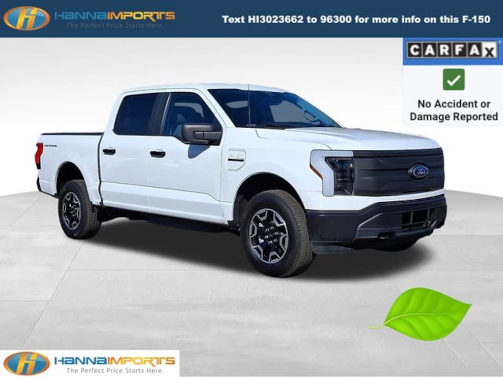 Why shop with Hanna Imports? We specialize in hand-selecting top-quality used cars, trucks, and SUVs for drivers across Raleigh, Durham, Cary, Chapel Hill, and the greater Triangle area of North Carolina. Our massive selection of 1,000+ vehicles on our Raleigh lot is carefully curated to include the most sought-after models, all priced below market value. We believe in transparency and efficiencyâ"our vehicles are aggressively priced from the start, which means no haggling, no hassle, and no wasted time. The price you see is our absolute best price. Whether you're coming from Wake Forest, Apex, Garner, or anywhere in central NC, weâre committed to making your car-buying experience smooth, affordable, and enjoyable. Come see why Hanna Imports is one of the most trusted used car dealerships in North Carolina! Used Ford F-150 Lightning in Raleigh. Used Ford F-150 Lightning in North Carolina, Equipment Group 110A Standard, F-150 Lightning Pro, AWD, Navigation system: Connected Navigation (3-year trial), Remote keyless entry, SYNC 4 w/Enhanced Voice Recognition, 4-Wheel Disc Brakes, 6 Speakers, ABS brakes, Air Conditioning, Alloy wheels, AM/FM radio, Auto High-beam Headlights, Auto-dimming Rear-View mirror, Automatic temperature control, Brake assist, Compass, Delay-off headlights, Driver door bin, Driver vanity mirror, Dual front impact airbags, Dual front side impact airbags, Electronic Stability Control, Emergency communication system: SYNC 4 911 Assist, Forward Sensing System, Four wheel independent suspension, Front anti-roll bar, Front Bucket Seats, Front Center Armrest, Front dual zone A/C, Front License Plate Bracket, Front reading lights, Fully automatic headlights, Heated door mirrors, Knee airbag, Low tire pressure warning, Occupant sensing airbag, Outside temperature display, Overhead airbag, Overhead console, Panic alarm, Passenger door bin, Passenger vanity mirror, Power door mirrors, Power steering, Power windows, Pro Power Onboard - 9.6 kW, Radio data system, Radio: AM/FM Stereo w/6 Speakers, Rear anti-roll bar, Rear step bumper, Security system, Speed control, Speed-sensing steering, Split folding rear seat, Steering wheel mounted audio controls, Telescoping steering wheel, Tilt steering wheel, Tough Bed Spray-In Bedliner, Traction control, Trip computer, Variably intermittent wipers, Vinyl Bucket Front Seats, and Wheels: 18" Machined w/Black High Gloss Pockets.