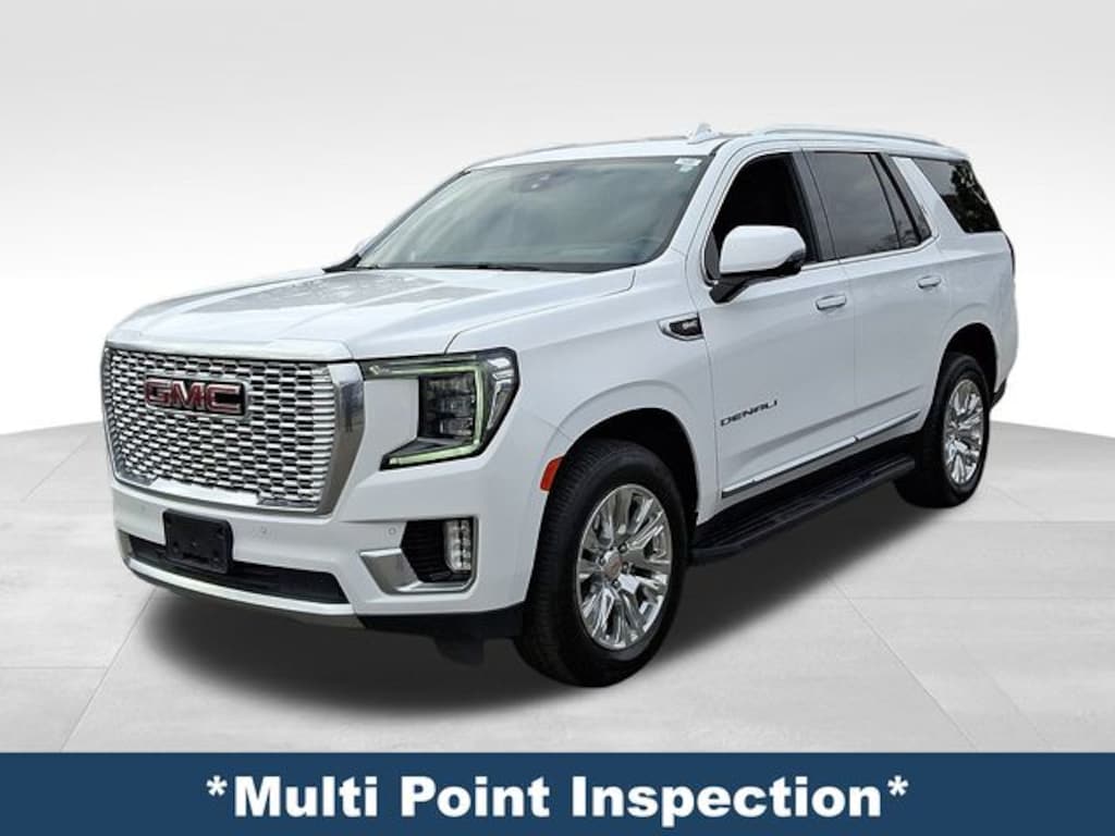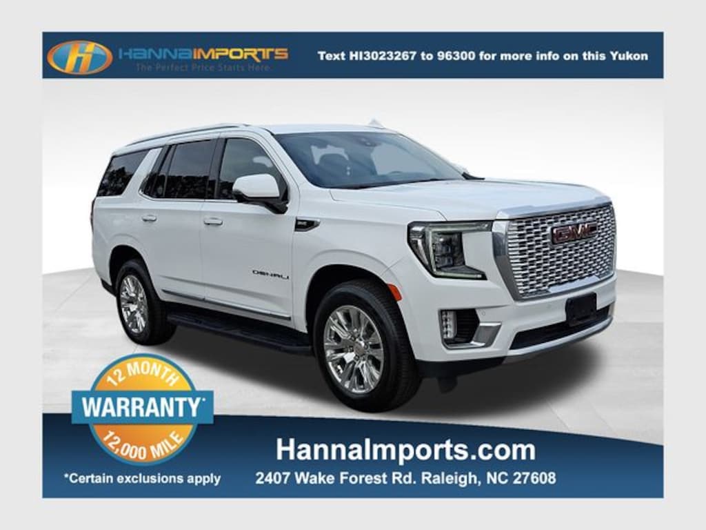Why shop with Hanna Imports? We specialize in hand-selecting top-quality used cars, trucks, and SUVs for drivers across Raleigh, Durham, Cary, Chapel Hill, and the greater Triangle area of North Carolina. Our massive selection of 1,000+ vehicles on our Raleigh lot is carefully curated to include the most sought-after models, all priced below market value. We believe in transparency and efficiencyâ"our vehicles are aggressively priced from the start, which means no haggling, no hassle, and no wasted time. The price you see is our absolute best price. Whether you're coming from Wake Forest, Apex, Garner, or anywhere in central NC, weâre committed to making your car-buying experience smooth, affordable, and enjoyable. Come see why Hanna Imports is one of the most trusted used car dealerships in North Carolina! Used GMC Yukon in Raleigh. Used GMC Yukon in North Carolina, Preferred Equipment Group 5SA (15" Diagonal Multi-Color Head-Up Display, 2 Presets For Outside Rearview Mirrors, 3 Years of GMC Connected Services, 3 Years of OnStar Safety & Security, 3rd Row 60/40 Power-Folding Split-Bench Seat, Bose 14-Speaker Surround w/CenterPoint, Bright Front & Rear Door Sill Plates, Chrome Door Handles w/Body-Color Strip, Dual Exhaust System, Enhanced Automatic Emergency Braking, Floor Console, Galvano Bodyside Moldings, Hands-Free Power Programmable Rear Liftgate, HD Surround Vision, Heated & Ventilated Driver & Front Passenger Seats, Heated 2nd Row Outboard Position Seats, Heated Driver & Front Passenger Seats, Heated Steering Wheel, Hill Descent Control, Inside Rear-View Auto-Dimming Mirror, Outside Heated Power-Adjustable Mirrors, Power Release 2nd Row Bucket Seats, Power Tilt & Telescopic Steering Column, Rear Pedestrian Alert, Safety Alert Seat, Universal Home Remote, and Wireless Charging), License Plate Front Mounting Package, Yukon Denali, 4WD, Summit White, Adaptive Cruise Control, Apple CarPlay/Android Auto, Heads-Up Display, Navigation System, Power Liftgate, 14 Speakers, 3 Years of OnStar Safety & Security (DISC), 3.23 Rear Axle Ratio, 3rd row seats: split-bench, 4-Wheel Disc Brakes, ABS brakes, Adaptive suspension, Air Conditioning, Alloy wheels, AM/FM radio: SiriusXM with 360L, AM/FM Stereo, Auto High-beam Headlights, Auto-dimming door mirrors, Auto-dimming Rear-View mirror, Auto-leveling suspension, Automatic Emergency Braking, Automatic temperature control, Black Roof Rack Cross Rails, Bodyside moldings, Brake assist, Bumpers: body-color, Compass, Delay-off headlights, Deleted 3 Years of OnStar Safety & Security, Driver door bin, Driver vanity mirror, Dual front impact airbags, Dual front side impact airbags, Electronic Stability Control, Emergency communication system: OnStar and GMC connected services capable, Following Distance Indicator, Forward Collision Al