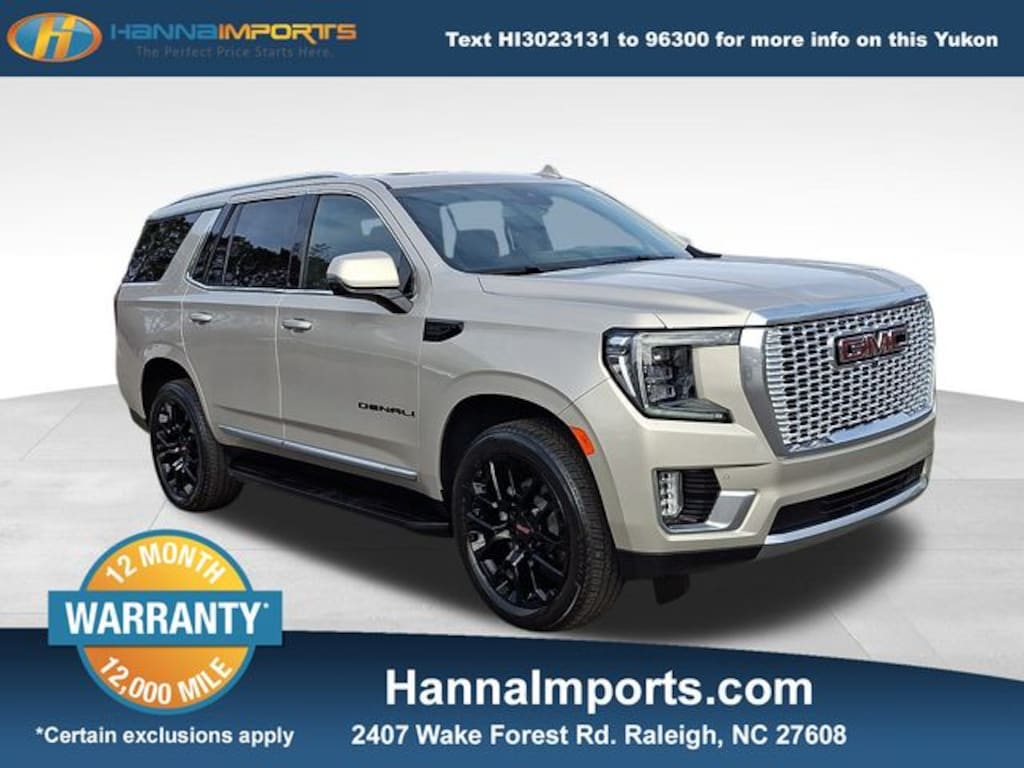 Why shop with Hanna Imports? We specialize in hand-selecting top-quality used cars, trucks, and SUVs for drivers across Raleigh, Durham, Cary, Chapel Hill, and the greater Triangle area of North Carolina. Our massive selection of 1,000+ vehicles on our Raleigh lot is carefully curated to include the most sought-after models, all priced below market value. We believe in transparency and efficiencyâ"our vehicles are aggressively priced from the start, which means no haggling, no hassle, and no wasted time. The price you see is our absolute best price. Whether you're coming from Wake Forest, Apex, Garner, or anywhere in central NC, weâre committed to making your car-buying experience smooth, affordable, and enjoyable. Come see why Hanna Imports is one of the most trusted used car dealerships in North Carolina! Used GMC Yukon in Raleigh. Used GMC Yukon in North Carolina, Preferred Equipment Group 5SA (12-Way Power Seat Adjusters, 15" Diagonal Multi-Color Head-Up Display, 2 Presets For Outside Rearview Mirrors, 3rd Row 60/40 Power-Folding Split-Bench Seat, Adaptive Cruise Control, Bose 14-Speaker Surround w/CenterPoint, Bright Front & Rear Door Sill Plates, Chrome Door Handles w/Body-Color Strip, Dual Exhaust System, Enhanced Automatic Emergency Braking, Floor Console, Galvano Bodyside Moldings, Hands-Free Power Programmable Rear Liftgate, HD Surround Vision, Heated 2nd Row Outboard Position Seats, Heated Driver & Front Passenger Seats, Heated Steering Wheel, Hill Descent Control, Inside Rear-View Auto-Dimming Mirror, Outside Heated Power-Adjustable Mirrors, Perforated Heated & Ventilated Dr & Frt Pass Seats, Power Release 2nd Row Bucket Seats, Power Tilt & Telescopic Steering Column, Rear Pedestrian Alert, Safety Alert Seat, Universal Home Remote, and Wireless Charging), Yukon Denali, 4WD, Dual-Pane Panoramic Power Sunroof, Navigation System, Power Liftgate, 14 Speakers, 3.23 Rear Axle Ratio, 3rd row seats: split-bench, 4-Wheel Disc Brakes, ABS brakes, Adaptive suspension, Air Conditioning, Alloy wheels, AM/FM radio: SiriusXM with 360L, AM/FM Stereo, Apple CarPlay/Android Auto, Auto High-beam Headlights, Auto-dimming door mirrors, Auto-dimming Rear-View mirror, Auto-leveling suspension, Automatic Emergency Braking, Automatic temperature control, Black Nameplates (LPO), Bodyside moldings, Brake assist, Bumpers: body-color, Compass, Delay-off headlights, Driver door bin, Driver vanity mirror, Dual front impact airbags, Dual front side impact airbags, Electronic Stability Control, Emergency communication system: OnStar and GMC connected services capable, Following Distance Indicator, Forward Collision Alert, Four wheel independent suspension, Front & Rear Park Assist, Front anti-roll bar, Front Bucket Seats, Front Center Armrest, Front dual zone A/C, Front fog light