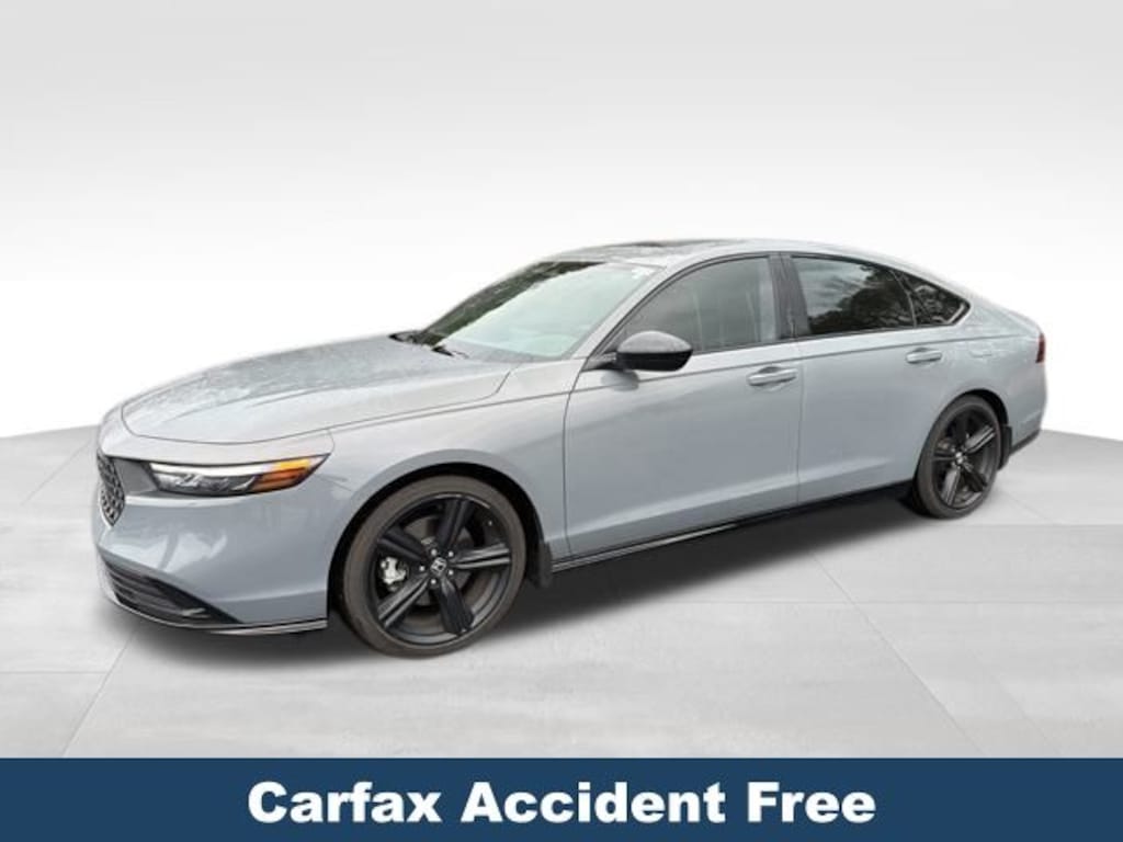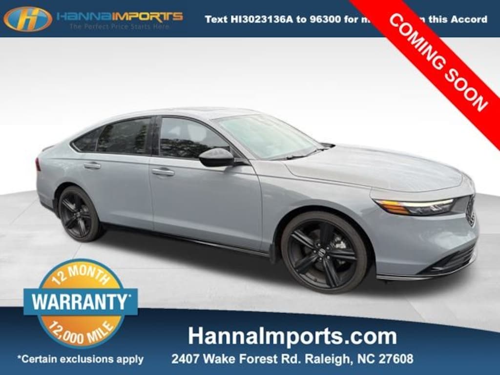 Why shop with Hanna Imports? We specialize in hand-selecting top-quality used cars, trucks, and SUVs for drivers across Raleigh, Durham, Cary, Chapel Hill, and the greater Triangle area of North Carolina. Our massive selection of 1,000+ vehicles on our Raleigh lot is carefully curated to include the most sought-after models, all priced below market value. We believe in transparency and efficiencyâ"our vehicles are aggressively priced from the start, which means no haggling, no hassle, and no wasted time. The price you see is our absolute best price. Whether you're coming from Wake Forest, Apex, Garner, or anywhere in central NC, weâre committed to making your car-buying experience smooth, affordable, and enjoyable. Come see why Hanna Imports is one of the most trusted used car dealerships in North Carolina! Used Honda Accord Hybrid in Raleigh. Used Honda Accord Hybrid in North Carolina, Accord Hybrid Sport-L, 2.0L 16V DOHC, Apple CarPlay/Android Auto, Exterior Parking Camera Rear, Heated Front Bucket Seats, Heated front seats, Lane departure: Lane Keeping Assist System (LKAS) active, Leather-Trimmed Seat Trim, Power moonroof, 4-Wheel Disc Brakes, 8 Speakers, ABS brakes, Adaptive Cruise Control: Adaptive Cruise Control (ACC) with Low-Speed Follow, Air Conditioning, Alloy wheels, AM/FM radio, Auto High-beam Headlights, Automatic temperature control, Blind Spot Information (BSI) System warning, Brake assist, Bumpers: body-color, Compass, Delay-off headlights, Driver door bin, Driver vanity mirror, Dual front impact airbags, Dual front side impact airbags, Electronic Stability Control, Emergency communication system: HondaLink, Four wheel independent suspension, Front anti-roll bar, Front Bucket Seats, Front Center Armrest, Front dual zone A/C, Front reading lights, Fully automatic headlights, Illuminated entry, Knee airbag, Leather Shift Knob, Leather steering wheel, Low tire pressure warning, Memory seat, Occupant sensing airbag, Outside temperature display, Overhead airbag, Overhead console, Panic alarm, Passenger door bin, Passenger vanity mirror, Power door mirrors, Power driver seat, Power passenger seat, Power steering, Power windows, Radio data system, Radio: 180-Watt Audio System, Rear anti-roll bar, Rear reading lights, Rear seat center armrest, Rear side impact airbag, Rear window defroster, Remote keyless entry, Security system, Speed control, Speed-sensing steering, Speed-Sensitive Wipers, Split folding rear seat, Spoiler, Steering wheel mounted audio controls, Telescoping steering wheel, Tilt steering wheel, Traction control, Trip computer, Variably intermittent wipers, and Wheels: 19" x 8.5J Matte Berlina Black.