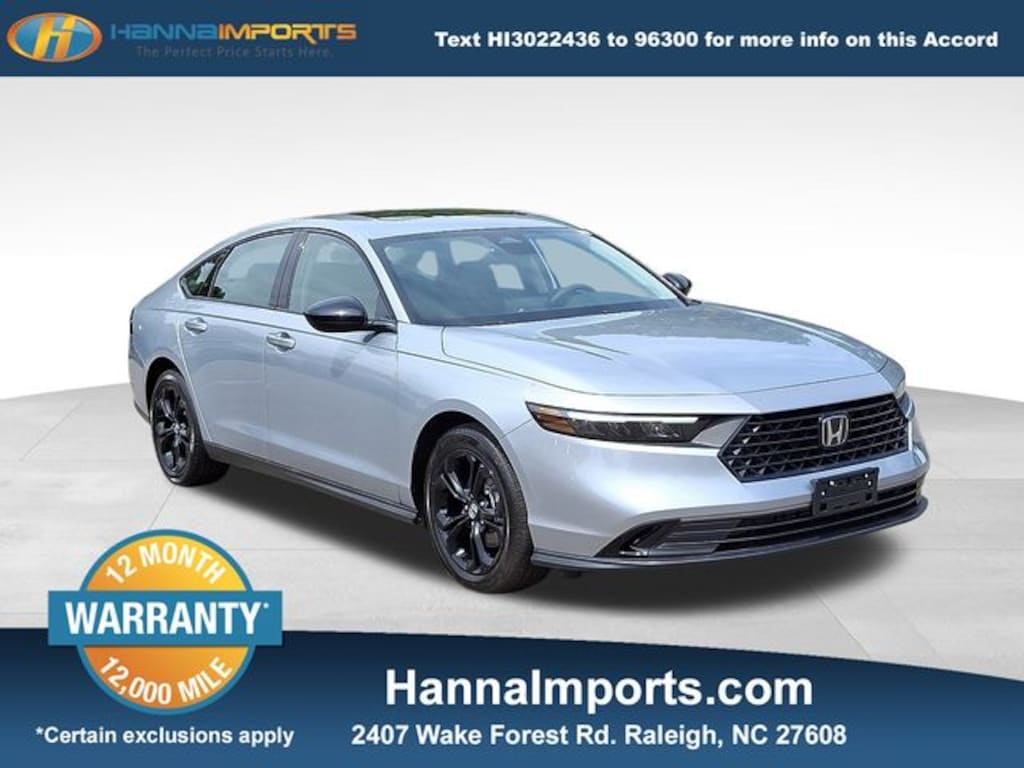 Why shop with Hanna Imports? We specialize in hand-selecting top-quality used cars, trucks, and SUVs for drivers across Raleigh, Durham, Cary, Chapel Hill, and the greater Triangle area of North Carolina. Our massive selection of 1,000+ vehicles on our Raleigh lot is carefully curated to include the most sought-after models, all priced below market value. We believe in transparency and efficiencyâ"our vehicles are aggressively priced from the start, which means no haggling, no hassle, and no wasted time. The price you see is our absolute best price. Whether you're coming from Wake Forest, Apex, Garner, or anywhere in central NC, weâre committed to making your car-buying experience smooth, affordable, and enjoyable. Come see why Hanna Imports is one of the most trusted used car dealerships in North Carolina! Used Honda Accord in Raleigh. Used Honda Accord in North Carolina, Accord SE, Black w/Fabric Seat Trim, Apple CarPlay/Android Auto, Blind Spot Information (BSI) System warning, Exterior Parking Camera Rear, Lane departure: Lane Keeping Assist System (LKAS) active, Power moonroof, Remote keyless entry, 4-Wheel Disc Brakes, 8 Speakers, ABS brakes, Adaptive Cruise Control: Adaptive Cruise Control (ACC) with Low-Speed Follow, Air Conditioning, Alloy wheels, AM/FM radio, Auto High-beam Headlights, Automatic temperature control, Brake assist, Bumpers: body-color, Compass, Delay-off headlights, Driver door bin, Driver vanity mirror, Dual front impact airbags, Dual front side impact airbags, Electronic Stability Control, Emergency communication system: HondaLink Assist, Fabric Seat Trim, Four wheel independent suspension, Front anti-roll bar, Front Bucket Seats, Front Center Armrest, Front dual zone A/C, Front reading lights, Fully automatic headlights, Heated door mirrors, Heated Front Bucket Seats, Heated front seats, Illuminated entry, Knee airbag, Low tire pressure warning, Occupant sensing airbag, Outside temperature display, Overhead airbag, Overhead console, Panic alarm, Passenger door bin, Passenger vanity mirror, Power door mirrors, Power driver seat, Power steering, Power windows, Radio data system, Radio: 180-Watt Audio System, Rear anti-roll bar, Rear reading lights, Rear seat center armrest, Rear side impact airbag, Rear window defroster, Security system, Speed control, Speed-sensing steering, Speed-Sensitive Wipers, Split folding rear seat, Steering wheel mounted audio controls, Tachometer, Telescoping steering wheel, Tilt steering wheel, Traction control, Trip computer, Variably intermittent wipers, and Wheels: 17" x 7.5J Berlina Black.