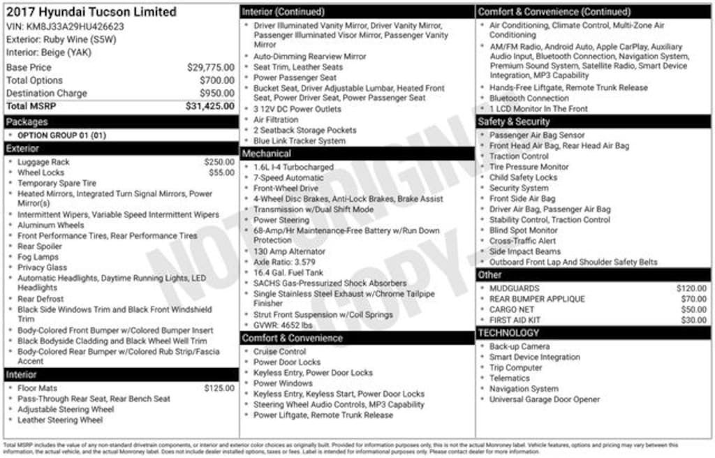 2017 Hyundai Tucson Limited Ruby Wine 25/30 City/Highway MPG