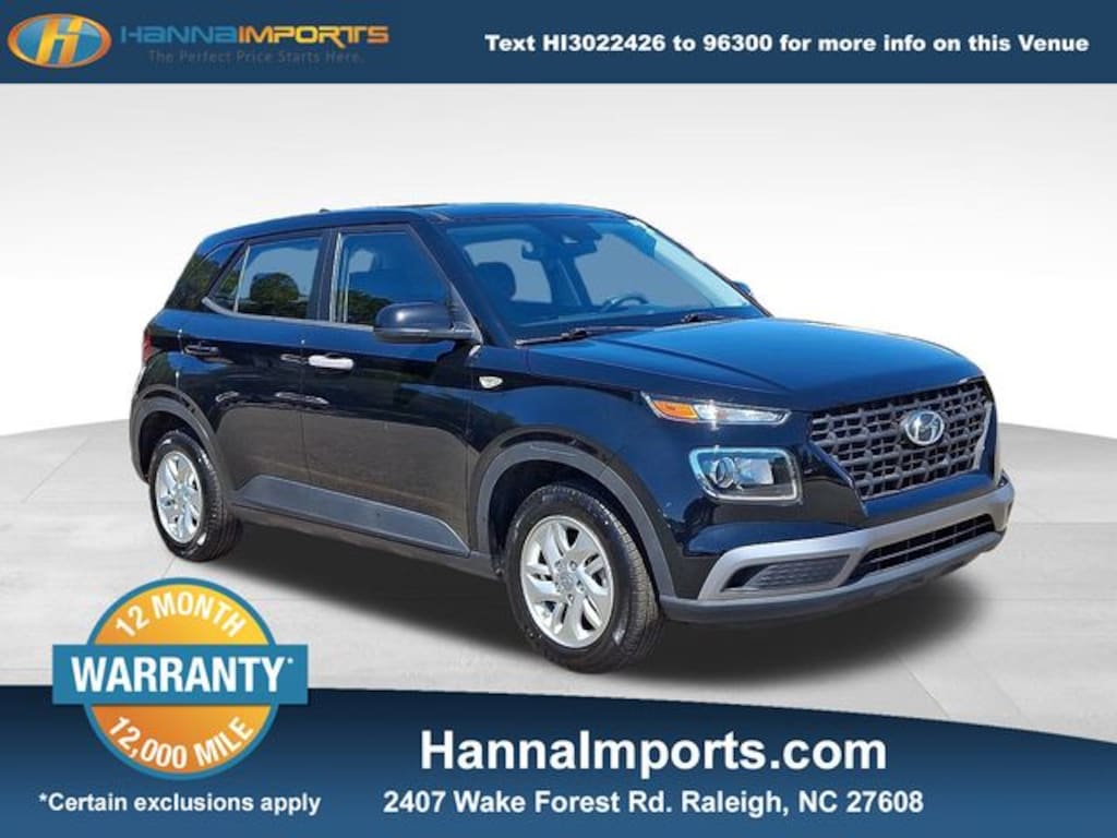 Why shop with Hanna Imports? We specialize in hand-selecting top-quality used cars, trucks, and SUVs for drivers across Raleigh, Durham, Cary, Chapel Hill, and the greater Triangle area of North Carolina. Our massive selection of 1,000+ vehicles on our Raleigh lot is carefully curated to include the most sought-after models, all priced below market value. We believe in transparency and efficiencyâ"our vehicles are aggressively priced from the start, which means no haggling, no hassle, and no wasted time. The price you see is our absolute best price. Whether you're coming from Wake Forest, Apex, Garner, or anywhere in central NC, weâre committed to making your car-buying experience smooth, affordable, and enjoyable. Come see why Hanna Imports is one of the most trusted used car dealerships in North Carolina! Used Hyundai Venue in Raleigh. Used Hyundai Venue in North Carolina, Option Group 01, Alloy wheels, Apple CarPlay & Android Auto, Auto High-beam Headlights, Fully automatic headlights, Power door mirrors, Radio: AM/FM/HD Display Audio, Remote keyless entry, Steering wheel mounted audio controls, 4 Speakers, 6.052 Axle Ratio, ABS brakes, Air Conditioning, AM/FM radio, Brake assist, Bumpers: body-color, Cargo Net, Cargo Tray, Carpeted Floor Mats, Cloth Seat Trim, Delay-off headlights, Driver door bin, Driver vanity mirror, Dual front impact airbags, Dual front side impact airbags, Electronic Stability Control, Front anti-roll bar, Front Bucket Seats, Front wheel independent suspension, Illuminated entry, Low tire pressure warning, Occupant sensing airbag, Outside temperature display, Overhead airbag, Overhead console, Panic alarm, Passenger door bin, Passenger vanity mirror, Power steering, Power windows, Rear Bumper Applique, Rear Seat Cup Holder, Rear window defroster, Rear window wiper, Security system, Speed control, Speed-sensing steering, Split folding rear seat, Spoiler, Tachometer, Telescoping steering wheel, Tilt steering wheel, Traction control, Trip computer, Variably intermittent wipers, and Wheels: 6.0J x 15" Alloy.