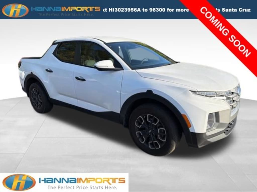 Why shop with Hanna Imports? We specialize in hand-selecting top-quality used cars, trucks, and SUVs for drivers across Raleigh, Durham, Cary, Chapel Hill, and the greater Triangle area of North Carolina. Our massive selection of 1,000+ vehicles on our Raleigh lot is carefully curated to include the most sought-after models, all priced below market value. We believe in transparency and efficiencyâ"our vehicles are aggressively priced from the start, which means no haggling, no hassle, and no wasted time. The price you see is our absolute best price. Whether you're coming from Wake Forest, Apex, Garner, or anywhere in central NC, weâre committed to making your car-buying experience smooth, affordable, and enjoyable. Come see why Hanna Imports is one of the most trusted used car dealerships in North Carolina! Used Hyundai Santa Cruz in Raleigh. Used Hyundai Santa Cruz in North Carolina, Option Group 01, Santa Cruz SEL, Apple CarPlay & Android Auto, Heated Front Bucket Seats, Remote keyless entry, 18" x 7.5J Alloy Wheels, 4-Wheel Disc Brakes, 4.081 Axle Ratio, 6 Speakers, ABS brakes, Air Conditioning, Alloy wheels, AM/FM radio: SiriusXM, Auto High-beam Headlights, Auto-leveling suspension, Automatic temperature control, Brake assist, Bumpers: body-color, Carpeted Floor Mats, Delay-off headlights, Driver door bin, Driver vanity mirror, Dual C-Channel Utility Tracks on Bed Side, Dual front impact airbags, Dual front side impact airbags, Electronic Stability Control, Emergency communication system: Bluelink+, Exterior Parking Camera Rear, First Aid Kit, Fitted Liners, Four wheel independent suspension, Front anti-roll bar, Front Bucket Seats, Front Center Armrest, Front dual zone A/C, Front reading lights, Fully automatic headlights, Heated door mirrors, Heated front seats, Illuminated entry, Low tire pressure warning, Mud Guards, Occupant sensing airbag, Outside temperature display, Overhead airbag, Overhead console, Panic alarm, Passenger door bin, Passenger vanity mirror, Power door mirrors, Power driver seat, Power steering, Power windows, Radio data system, Radio: AM/FM/HD Audio System, Rear anti-roll bar, Rear side impact airbag, Rear step bumper, Rear window defroster, Security system, Speed control, Speed-sensing steering, Split folding rear seat, Spoiler, Stain & Odor Resistant Cloth Seat Trim, Steering wheel mounted audio controls, Tachometer, Telescoping steering wheel, Tilt steering wheel, Traction control, Trip computer, Turn signal indicator mirrors, Variably intermittent wipers, and Wheel Locks.