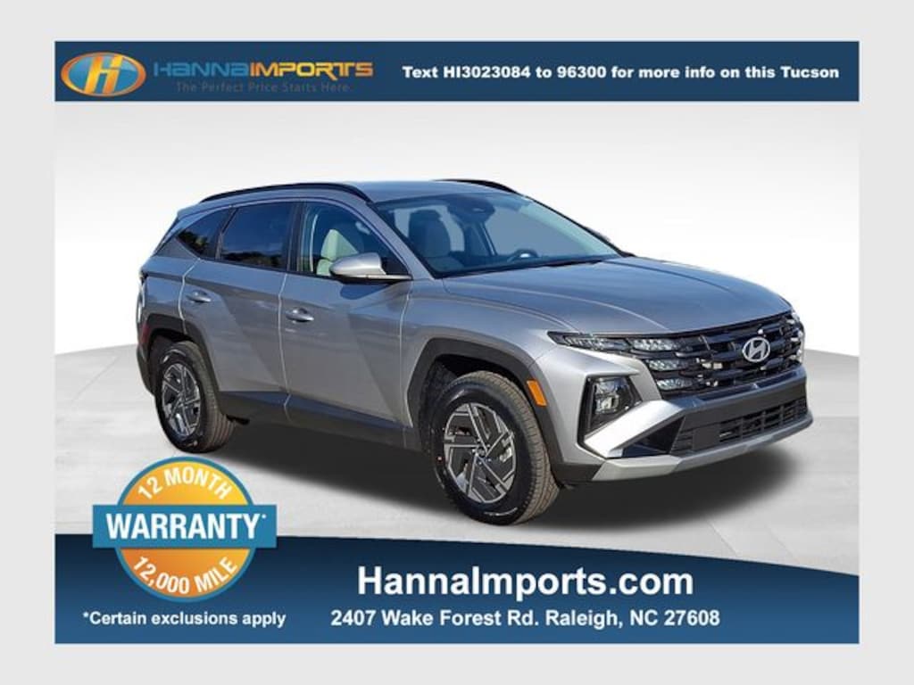Why shop with Hanna Imports? We specialize in hand-selecting top-quality used cars, trucks, and SUVs for drivers across Raleigh, Durham, Cary, Chapel Hill, and the greater Triangle area of North Carolina. Our massive selection of 1,000+ vehicles on our Raleigh lot is carefully curated to include the most sought-after models, all priced below market value. We believe in transparency and efficiencyâ"our vehicles are aggressively priced from the start, which means no haggling, no hassle, and no wasted time. The price you see is our absolute best price. Whether you're coming from Wake Forest, Apex, Garner, or anywhere in central NC, weâre committed to making your car-buying experience smooth, affordable, and enjoyable. Come see why Hanna Imports is one of the most trusted used car dealerships in North Carolina! Used Hyundai Tucson Hybrid in Raleigh. Used Hyundai Tucson Hybrid in North Carolina, Option Group 01, 1.6L I4 DGI Hybrid Turbocharged DOHC 16V LEV3-SULEV30, Apple CarPlay & Android Auto, Heated front seats, Power Liftgate, 17" Alloy Wheels, 4-Wheel Disc Brakes, 6 Speakers, ABS brakes, Air Conditioning, Alloy wheels, AM/FM radio: SiriusXM, Auto High-beam Headlights, Automatic temperature control, Brake assist, Bumpers: body-color, Delay-off headlights, Driver door bin, Driver vanity mirror, Dual front impact airbags, Dual front side impact airbags, Electronic Stability Control, Emergency communication system: Bluelink+, Four wheel independent suspension, Front anti-roll bar, Front Bucket Seats, Front Center Armrest, Front dual zone A/C, Front reading lights, Fully automatic headlights, Heated door mirrors, Heated Front Bucket Seats, Illuminated entry, Low tire pressure warning, Occupant sensing airbag, Outside temperature display, Overhead airbag, Overhead console, Panic alarm, Passenger door bin, Passenger vanity mirror, Power door mirrors, Power driver seat, Power steering, Power windows, Radio data system, Radio: AM/FM/HD Audio System, Rear anti-roll bar, Rear reading lights, Rear seat center armrest, Rear side impact airbag, Rear window defroster, Rear window wiper, Remote keyless entry, Security system, Speed control, Split folding rear seat, Spoiler, Stain & Odor Resistant Cloth Seat Trim, Steering wheel mounted audio controls, Tachometer, Telescoping steering wheel, Tilt steering wheel, Traction control, Trip computer, and Variably intermittent wipers.