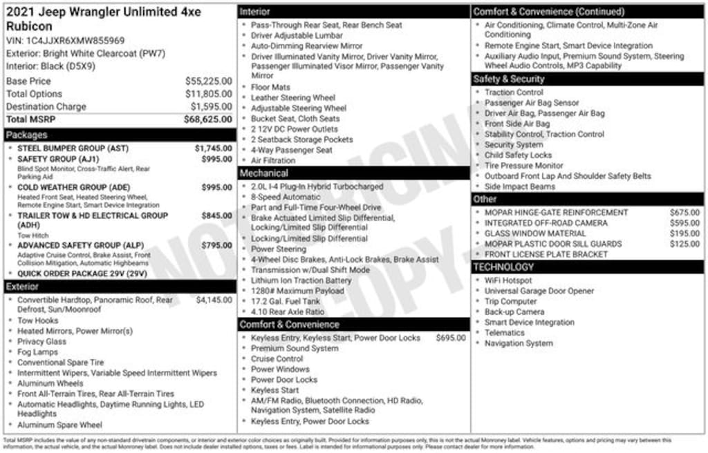 2021 Jeep Wrangler Unlimited Rubicon 4xe Bright White Clearcoat