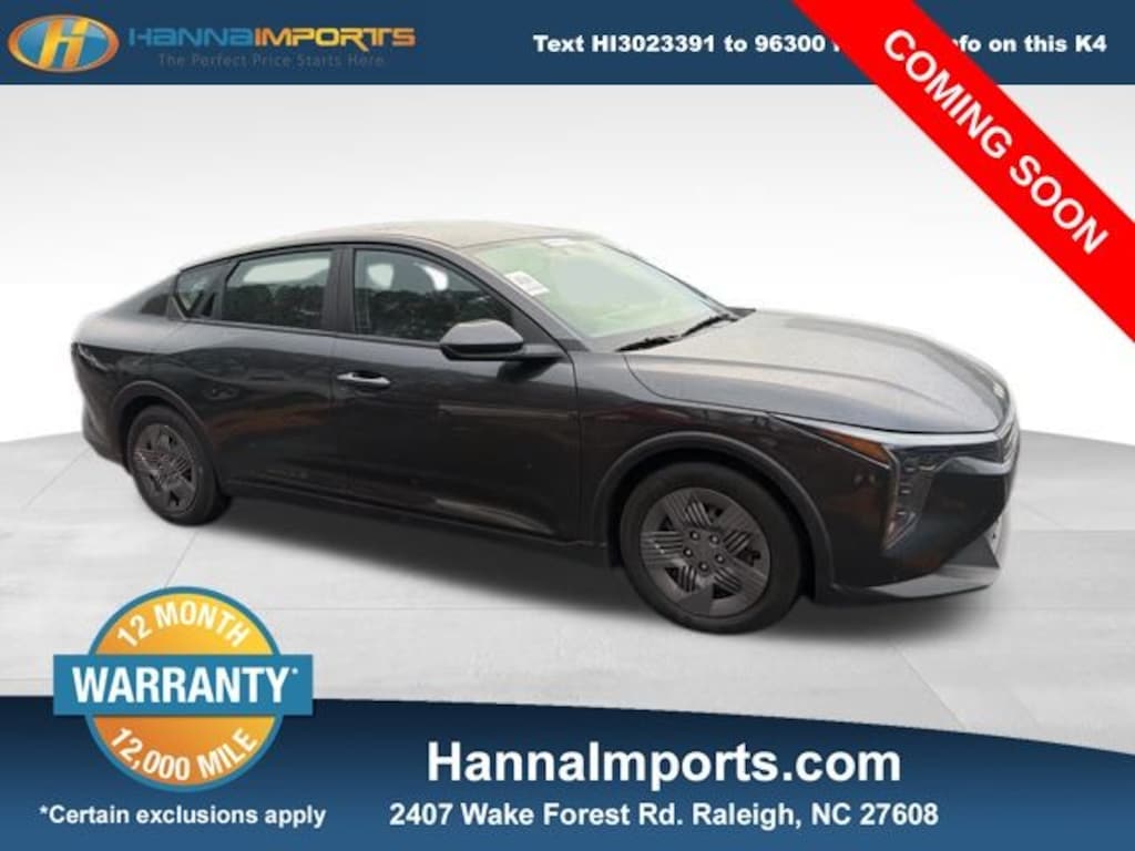 Why shop with Hanna Imports? We specialize in hand-selecting top-quality used cars, trucks, and SUVs for drivers across Raleigh, Durham, Cary, Chapel Hill, and the greater Triangle area of North Carolina. Our massive selection of 1,000+ vehicles on our Raleigh lot is carefully curated to include the most sought-after models, all priced below market value. We believe in transparency and efficiencyâ"our vehicles are aggressively priced from the start, which means no haggling, no hassle, and no wasted time. The price you see is our absolute best price. Whether you're coming from Wake Forest, Apex, Garner, or anywhere in central NC, weâre committed to making your car-buying experience smooth, affordable, and enjoyable. Come see why Hanna Imports is one of the most trusted used car dealerships in North Carolina! Used Kia K4 in Raleigh. Used Kia K4 in North Carolina, K4 LX, Apple CarPlay & Android Auto, Remote keyless entry, 4 Speakers, 4-Wheel Disc Brakes, ABS brakes, Air Conditioning, AM/FM radio: SiriusXM, Auto High-beam Headlights, Brake assist, Bumpers: body-color, Cloth Seat Trim, Delay-off headlights, Driver door bin, Driver vanity mirror, Dual front impact airbags, Dual front side impact airbags, Electronic Stability Control, Front anti-roll bar, Front Bucket Seats, Front Center Armrest, Front reading lights, Front wheel independent suspension, Fully automatic headlights, Heated door mirrors, Illuminated entry, Low tire pressure warning, Occupant sensing airbag, Outside temperature display, Overhead airbag, Overhead console, Panic alarm, Passenger door bin, Passenger vanity mirror, Power door mirrors, Power steering, Power windows, Radio data system, Radio: 12.3" Touchscreen Audio Display, Rear side impact airbag, Rear window defroster, Security system, Speed control, Steering wheel mounted audio controls, Tachometer, Telescoping steering wheel, Tilt steering wheel, Traction control, Trip computer, Variably intermittent wipers, and Wheels: 16" x 6.5J Steel w/Dark Gray Cover.