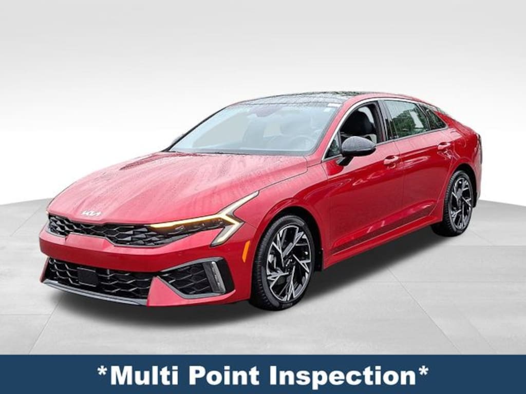 Why shop with Hanna Imports? We specialize in hand-selecting top-quality used cars, trucks, and SUVs for drivers across Raleigh, Durham, Cary, Chapel Hill, and the greater Triangle area of North Carolina. Our massive selection of 1,000+ vehicles on our Raleigh lot is carefully curated to include the most sought-after models, all priced below market value. We believe in transparency and efficiencyâ"our vehicles are aggressively priced from the start, which means no haggling, no hassle, and no wasted time. The price you see is our absolute best price. Whether you're coming from Wake Forest, Apex, Garner, or anywhere in central NC, weâre committed to making your car-buying experience smooth, affordable, and enjoyable. Come see why Hanna Imports is one of the most trusted used car dealerships in North Carolina! Used Kia K5 in Raleigh. Used Kia K5 in North Carolina, GT-Line Premium Package (Active Sound Design, Bose Premium Audio, LED Interior Lighting, and Panoramic Sunroof), K5 GT-Line, Navigation System, Remote keyless entry, Textured Film Rear Bumper Applique, 4-Wheel Disc Brakes, 6 Speakers, ABS brakes, Air Conditioning, Alloy wheels, AM/FM radio: SiriusXM, Auto High-beam Headlights, Automatic temperature control, Brake assist, Bumpers: body-color, Cargo Net, Carpeted Floor Mats, Delay-off headlights, Driver door bin, Driver vanity mirror, Dual front impact airbags, Dual front side impact airbags, EC Mirror w/Homelink, Electronic Stability Control, Emergency communication system: Kia Connect (includes 1 year free trial), Four wheel independent suspension, Front anti-roll bar, Front Bucket Seats, Front Center Armrest, Front dual zone A/C, Front fog lights, Front reading lights, Fully automatic headlights, Heated door mirrors, Heated Front Bucket Seats, Heated front seats, Heated steering wheel, Illuminated entry, Knee airbag, Leather Shift Knob, Leather steering wheel, LED Trunk Light, Low tire pressure warning, Mud Guards, Occupant sensing airbag, Outside temperature display, Overhead airbag, Overhead console, Panic alarm, Passenger door bin, Passenger vanity mirror, Power door mirrors, Power driver seat, Power steering, Power windows, Radio data system, Radio: AM/FM Audio System, Rear anti-roll bar, Rear seat center armrest, Rear side impact airbag, Rear window defroster, Security system, Speed control, Speed-sensing steering, Split folding rear seat, Sport steering wheel, Steering wheel mounted audio controls, Tachometer, Telescoping steering wheel, Tilt steering wheel, Traction control, Trip computer, Turn signal indicator mirrors, Variably intermittent wipers, and Wheels: 18" x 7.5J Gloss Black Machined Finish Alloy.