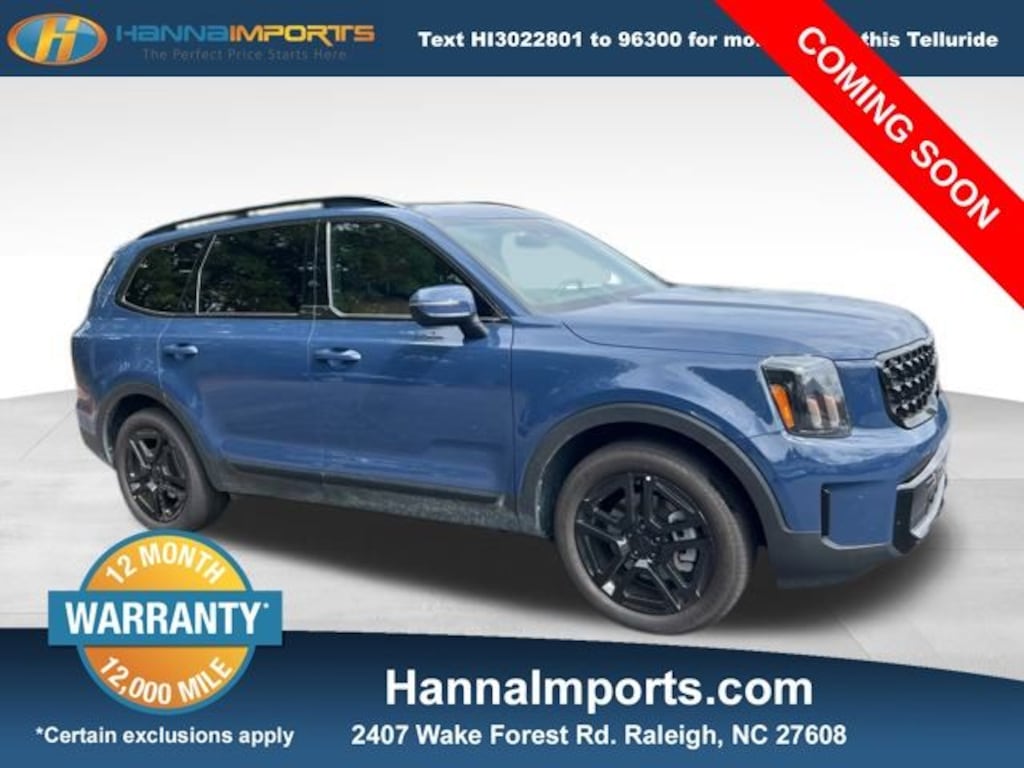 Why shop with Hanna Imports? We specialize in hand-selecting top-quality used cars, trucks, and SUVs for drivers across Raleigh, Durham, Cary, Chapel Hill, and the greater Triangle area of North Carolina. Our massive selection of 1,000+ vehicles on our Raleigh lot is carefully curated to include the most sought-after models, all priced below market value. We believe in transparency and efficiencyâ€"our vehicles are aggressively priced from the start, which means no haggling, no hassle, and no wasted time. The price you see is our absolute best price. Whether you're coming from Wake Forest, Apex, Garner, or anywhere in central NC, we’re committed to making your car-buying experience smooth, affordable, and enjoyable. Come see why Hanna Imports is one of the most trusted used car dealerships in North Carolina! Used Kia Telluride in Raleigh. Used Kia Telluride in North Carolina, Terracotta Interior Color Package, Telluride EX X-Line, AWD, Apple CarPlay & Android Auto, Exterior Parking Camera Rear, Navigation System, Power Liftgate, Power moonroof, Remote keyless entry, 3rd row seats: split-bench, 4-Wheel Disc Brakes, 6 Speakers, ABS brakes, Air Conditioning, Alloy wheels, AM/FM radio: SiriusXM, Auto High-beam Headlights, Auto-dimming Rear-View mirror, Auto-leveling suspension, Automatic temperature control, Brake assist, Bumpers: body-color, Carpeted Floor Mats, Compass, Delay-off headlights, Driver door bin, Driver vanity mirror, Dual front impact airbags, Dual front side impact airbags, Electronic Stability Control, Emergency communication system: 911 Connect, Four wheel independent suspension, Front anti-roll bar, Front Bucket Seats, Front Center Armrest, Front dual zone A/C, Front reading lights, Fully automatic headlights, Heated & Ventilated Front Bucket Seats, Heated door mirrors, Heated front seats, Heated steering wheel, Illuminated entry, Knee airbag, Leather Seat Trim, Leather Shift Knob, Leather steering wheel, Low tire pressure warning, Occupant sensing airbag, Outside temperature display, Overhead airbag, Overhead console, Panic alarm, Passenger door bin, Passenger vanity mirror, Power door mirrors, Power driver seat, Power passenger seat, Power steering, Power windows, Radio data system, Radio: AM/FM Display Audio System, Rear air conditioning, Rear anti-roll bar, Rear audio controls, Rear reading lights, Rear side impact airbag, Rear window defroster, Rear window wiper, Reclining 3rd row seat, Security system, Speed control, Speed-sensing steering, Split folding rear seat, Spoiler, Steering wheel mounted audio controls, Tachometer, Telescoping steering wheel, Tilt steering wheel, Traction control, Trip computer, Turn signal indicator mirrors, Variably intermittent wipers, Ventilated front seats, and Wheels: 20" x 7.5" Black Finish X-LINE Exclusive.