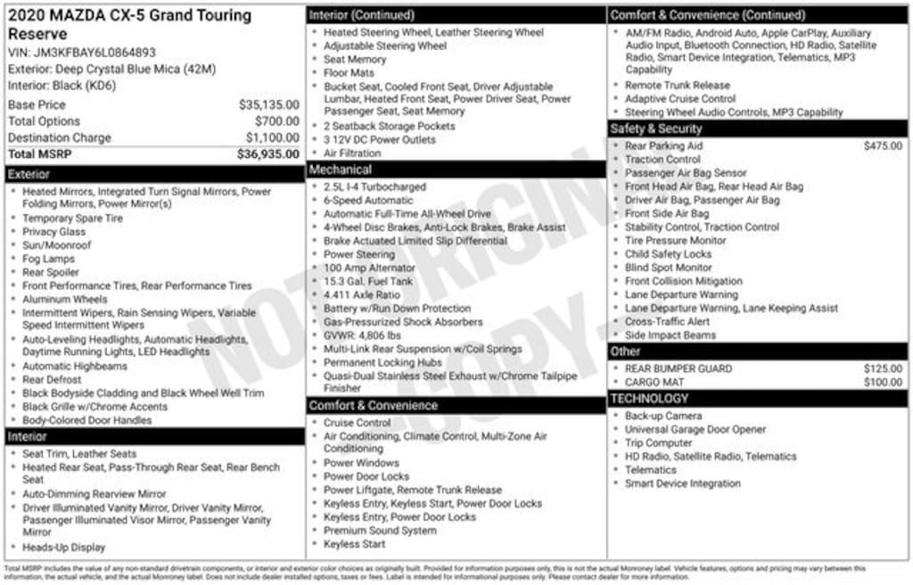 2020 Mazda CX-5 Grand Touring Reserve Deep Crystal Blue Mica 22/27 City/Highway MPG