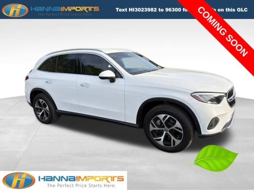 Why shop with Hanna Imports? We specialize in hand-selecting top-quality used cars, trucks, and SUVs for drivers across Raleigh, Durham, Cary, Chapel Hill, and the greater Triangle area of North Carolina. Our massive selection of 1,000+ vehicles on our Raleigh lot is carefully curated to include the most sought-after models, all priced below market value. We believe in transparency and efficiencyâ"our vehicles are aggressively priced from the start, which means no haggling, no hassle, and no wasted time. The price you see is our absolute best price. Whether you're coming from Wake Forest, Apex, Garner, or anywhere in central NC, weâre committed to making your car-buying experience smooth, affordable, and enjoyable. Come see why Hanna Imports is one of the most trusted used car dealerships in North Carolina! Used Mercedes-Benz GLC in Raleigh. Used Mercedes-Benz GLC in North Carolina, GLC 350e 4MATIC®, I4, Navigation System, 11.9" Center Touchscreen Display, 16-Way Power Front Seats with Memory/Lumbar/Thigh Extension, 3 USB C-Ports, 4-Wheel Disc Brakes, 8 Speakers, ABS brakes, Air Conditioning, Alloy wheels, AM/FM radio: SiriusXM, Apple CarPlay®/Android Auto®, Auto High-beam Headlights, Auto tilt-away steering wheel, Auto-dimming Rear-View mirror, Auto-leveling suspension, Automatic temperature control, Brake assist, Bumpers: body-color, Child-Seat-Sensing Airbag, Compass, Delay-off headlights, Driver door bin, Driver vanity mirror, Dual front impact airbags, Dual front side impact airbags, Electronic Stability Control, Emergency communication system: eCall Emergency System, Exterior Parking Camera Rear, Four wheel independent suspension, Front anti-roll bar, Front Bucket Seats, Front Center Armrest, Front dual zone A/C, Front reading lights, Fully automatic headlights, Garage door transmitter: HomeLink, Genuine wood dashboard insert, HD Radio, Head restraints memory, Heated door mirrors, Heated Front Bucket Seats, Heated front seats, Illuminated entry, Inductive Wireless Charging, Knee airbag, Leather steering wheel, Low tire pressure warning, MB-Tex Upholstery, Memory seat, Occupant sensing airbag, Outside temperature display, Overhead airbag, Overhead console, Panic alarm, Passenger door bin, Passenger vanity mirror, Power adjustable front head restraints, Power door mirrors, Power driver seat, Power Liftgate, Power passenger seat, Power steering, Power windows, Premium audio system: MBUX, Radio data system, Radio: 3rd Generation MBUX, Rain sensing wipers, Rear anti-roll bar, Rear fog lights, Rear reading lights, Rear seat center armrest, Rear window defroster, Rear window wiper, Remote keyless entry, Security system, SiriusXM Satellite Radio, Speed control, Speed-sensing steering, Split folding rear seat, Spoiler, Steering wheel memory, Steering wheel mounted audio controls, Tachometer, Telescoping steering wheel, Tilt steering wheel, Traction control, Trip computer, Turn signal indicator mirrors, Variably intermittent wipers, Wheels: 19" AMG® 5-Spoke with Black Accents, Wireless Android Auto®, and Wireless Apple CarPlay®.
