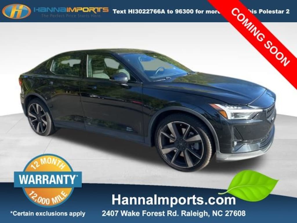 Why shop with Hanna Imports? We specialize in hand-selecting top-quality used cars, trucks, and SUVs for drivers across Raleigh, Durham, Cary, Chapel Hill, and the greater Triangle area of North Carolina. Our massive selection of 1,000+ vehicles on our Raleigh lot is carefully curated to include the most sought-after models, all priced below market value. We believe in transparency and efficiencyâ"our vehicles are aggressively priced from the start, which means no haggling, no hassle, and no wasted time. The price you see is our absolute best price. Whether you're coming from Wake Forest, Apex, Garner, or anywhere in central NC, weâre committed to making your car-buying experience smooth, affordable, and enjoyable. Come see why Hanna Imports is one of the most trusted used car dealerships in North Carolina! Used Polestar 2 in Raleigh. Used Polestar 2 in North Carolina, Pilot Package (360 Surround View Camera, Driver Assistance, Driver Awareness, and Pixel LED Headlights w/Light Sequence), Plus Package (Cordless Charging, Fixed Panoramic Sunroof, harman/kardon Premium Sound, Heat Pump, Heated Rear Seat, Heated Steering Wheel, Heated Wiper Nozzles, Interior High Level Illumination, LED Front Fog Lights w/Cornering Lights, Mechanical Cushion Extensions, Power Driver & Passenger Seats, Rear Storage Net & Front Seat Backrests, and WeaveTech w/Black Ash Deco Seating Surfaces), 2 Long Range Dual Motor, AWD, Exterior Parking Camera Rear, Lane Departure Warning System, Navigation System, Power Liftgate, 4-Wheel Disc Brakes, 8 Speakers, ABS brakes, Air Conditioning, Alloy wheels, Auto High-beam Headlights, Auto-dimming Rear-View mirror, Automatic temperature control, Brake assist, Bumpers: body-color, Compass, Delay-off headlights, Driver door bin, Driver vanity mirror, Dual front impact airbags, Dual front side impact airbags, Electronic Stability Control, Embossed Textile Seating Surfaces, Emergency communication system: Polestar Connect, Four wheel independent suspension, Front anti-roll bar, Front Bucket Seats, Front Center Armrest, Front dual zone A/C, Front reading lights, Fully automatic headlights, Garage door transmitter: Homelink, Heated door mirrors, Heated Front Seats, Heated front seats, Illuminated entry, Knee airbag, Low tire pressure warning, Memory seat, Occupant sensing airbag, Outside temperature display, Overhead airbag, Overhead console, Panic alarm, Passenger door bin, Passenger vanity mirror, Power door mirrors, Power driver seat, Power passenger seat, Power steering, Power windows, Radio data system, Radio: High Performance Audio, Rain sensing wipers, Rear anti-roll bar, Rear fog lights, Rear reading lights, Rear seat center armrest, Rear window defroster, Remote keyless entry, Security system, Speed control, Speed-sensing steering, Split folding rear seat, Steering wheel mounted audio controls, Telescoping steering wheel, Tilt steering wheel, Traction control, Trip computer, Turn signal indicator mirrors, Variably intermittent wipers, and Wheels: 19" 5 V-Spoke Black Diamond Cut Alloy.