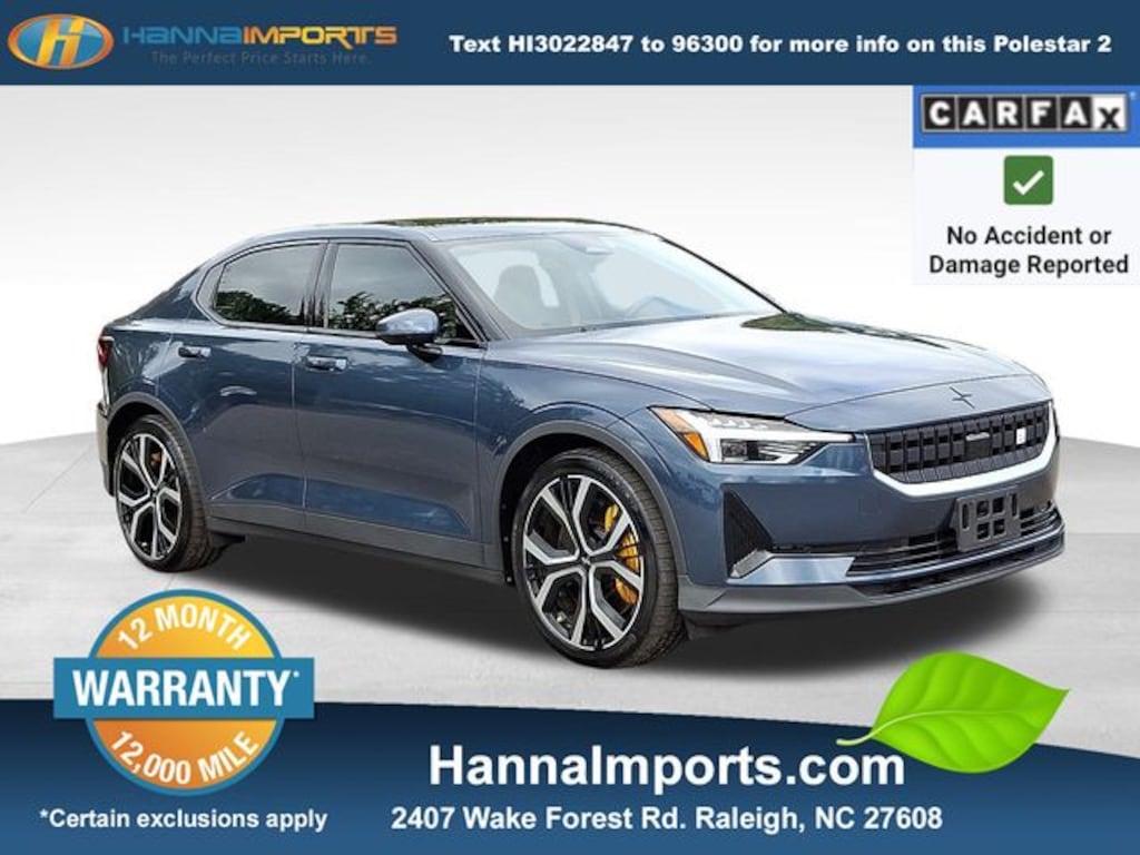 Why shop with Hanna Imports? We specialize in hand-selecting top-quality used cars, trucks, and SUVs for drivers across Raleigh, Durham, Cary, Chapel Hill, and the greater Triangle area of North Carolina. Our massive selection of 1,000+ vehicles on our Raleigh lot is carefully curated to include the most sought-after models, all priced below market value. We believe in transparency and efficiencyâ"our vehicles are aggressively priced from the start, which means no haggling, no hassle, and no wasted time. The price you see is our absolute best price. Whether you're coming from Wake Forest, Apex, Garner, or anywhere in central NC, weâre committed to making your car-buying experience smooth, affordable, and enjoyable. Come see why Hanna Imports is one of the most trusted used car dealerships in North Carolina! Used Polestar 2 in Raleigh. Used Polestar 2 in North Carolina, 2 Long Range Dual Motor, AWD, Exterior Parking Camera Rear, Heated Front Seats, Lane Departure Warning System, Navigation System, Power Liftgate, 4-Wheel Disc Brakes, 8 Speakers, ABS brakes, Air Conditioning, Alloy wheels, Auto High-beam Headlights, Auto-dimming Rear-View mirror, Automatic temperature control, Brake assist, Bumpers: body-color, Compass, Delay-off headlights, Driver door bin, Driver vanity mirror, Dual front impact airbags, Dual front side impact airbags, Electronic Stability Control, Embossed Textile Seating Surfaces, Emergency communication system: Polestar Connect, Four wheel independent suspension, Front anti-roll bar, Front Bucket Seats, Front Center Armrest, Front dual zone A/C, Front reading lights, Fully automatic headlights, Garage door transmitter: Homelink, Heated door mirrors, Heated front seats, Illuminated entry, Knee airbag, Low tire pressure warning, Memory seat, Occupant sensing airbag, Outside temperature display, Overhead airbag, Overhead console, Panic alarm, Passenger door bin, Passenger vanity mirror, Power door mirrors, Power driver seat, Power passenger seat, Power steering, Power windows, Radio data system, Radio: High Performance Audio, Rain sensing wipers, Rear anti-roll bar, Rear fog lights, Rear reading lights, Rear seat center armrest, Rear window defroster, Remote keyless entry, Security system, Speed control, Speed-sensing steering, Split folding rear seat, Steering wheel mounted audio controls, Telescoping steering wheel, Tilt steering wheel, Traction control, Trip computer, Turn signal indicator mirrors, Variably intermittent wipers, and Wheels: 19" 5 V-Spoke Black Diamond Cut Alloy.