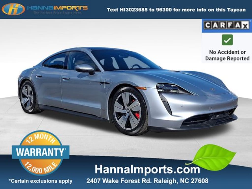 Why shop with Hanna Imports? We specialize in hand-selecting top-quality used cars, trucks, and SUVs for drivers across Raleigh, Durham, Cary, Chapel Hill, and the greater Triangle area of North Carolina. Our massive selection of 1,000+ vehicles on our Raleigh lot is carefully curated to include the most sought-after models, all priced below market value. We believe in transparency and efficiencyâ"our vehicles are aggressively priced from the start, which means no haggling, no hassle, and no wasted time. The price you see is our absolute best price. Whether you're coming from Wake Forest, Apex, Garner, or anywhere in central NC, weâre committed to making your car-buying experience smooth, affordable, and enjoyable. Come see why Hanna Imports is one of the most trusted used car dealerships in North Carolina! Used Porsche Taycan in Raleigh. Used Porsche Taycan in North Carolina, 14-Way Power Seats w/Memory Package, Performance Package (Porsche Dynamic Chassis Control Sport (PDCC Sport), Porsche Electric Sport Sound, Porsche Torque Vectoring Plus (PTV +), and Rear Axle Steering w/Power Steering Plus), Premium Package (BOSE Surround Sound System, Fixed Panoramic Roof in Glass, Front & Rear ParkAssist w/Surround View, Front Seat Ventilation, Ionizer, Lane Change Assist (LCA), and LED-Matrix Design Headlights w/PDLS+), Sport Chrono Package, Storage Package, Taycan 4S, Exterior Parking Camera Rear, Navigation system: Porsche Communication Management (PCM), 10 Speakers, 4-Wheel Disc Brakes, 8-Way Power Front Seats, ABS brakes, Adaptive suspension, Air Conditioning, Alloy wheels, Apple CarPlay, Auto High-beam Headlights, Auto-dimming door mirrors, Auto-dimming Rear-View mirror, Auto-leveling suspension, Automatic temperature control, Brake assist, Bumpers: body-color, Compass, Delay-off headlights, Driver door bin, Driver vanity mirror, Dual front impact airbags, Dual front side impact airbags, Electronic Stability Control, Four wheel independent suspension, Front anti-roll bar, Front Bucket Seats, Front Center Armrest, Front dual zone A/C, Front reading lights, Fully automatic headlights, Garage door transmitter: HomeLink, Heated door mirrors, Heated front seats, Illuminated entry, Knee airbag, Leather steering wheel, Low tire pressure warning, Occupant sensing airbag, Outside temperature display, Overhead airbag, Overhead console, Panic alarm, Partial Leather Seat Trim, Passenger door bin, Passenger vanity mirror, Porsche Communication Management, Power door mirrors, Power driver seat, Power passenger seat, Power steering, Power windows, Radio data system, Rain sensing wipers, Rear anti-roll bar, Rear fog lights, Rear reading lights, Rear seat center armrest, Rear side impact airbag, Rear window defroster, Remote keyless entry, Security system, Speed control, Speed-sensing steering, Split folding rear seat, Spoiler, Sport steering wheel, Steering wheel mounted audio controls, Telescoping steering wheel, Tilt steering wheel, Traction control, Trip computer, Variably intermittent wipers, and Wheels: 19" Taycan S Aero.