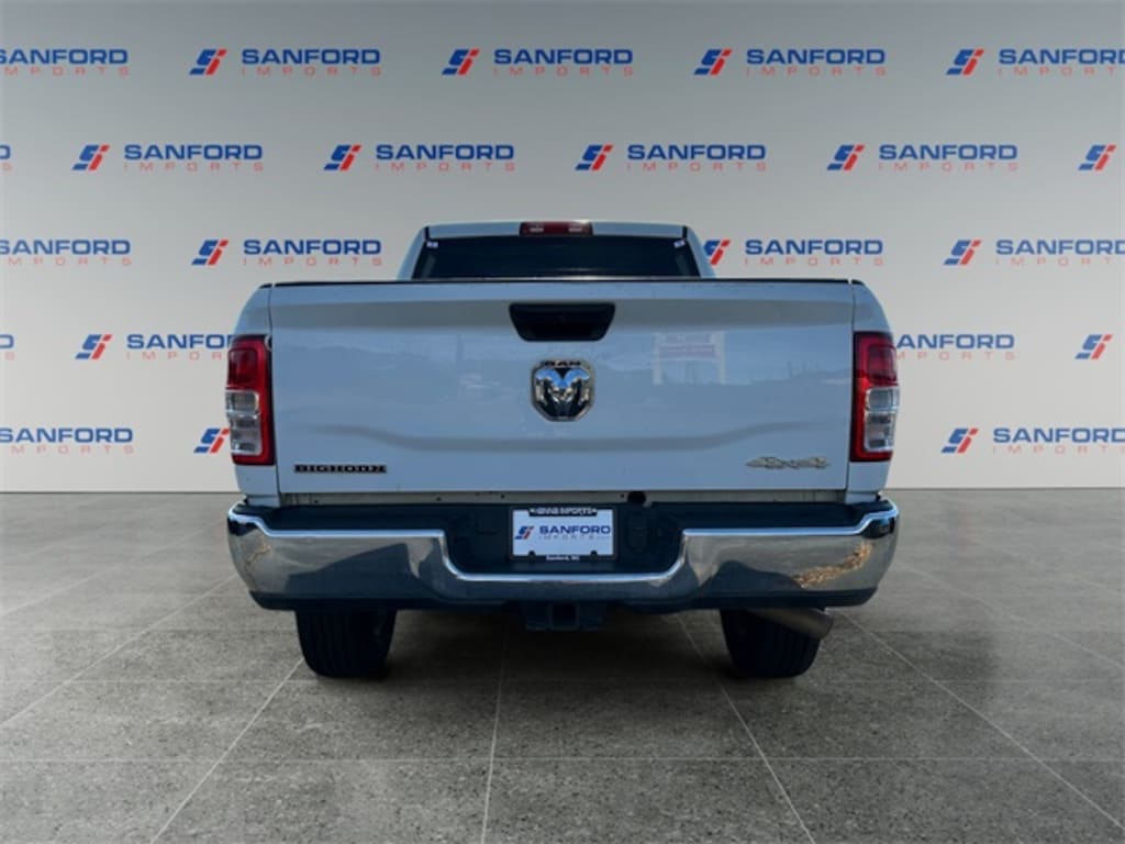 Equipped with Level 1 Equipment Group (2 Way Rear Headrest Seat, 2nd Row In Floor Storage Bins, 4 Way Front Headrests, 40/20/40 Split Bench Seat, 4G LTE Wi-Fi Hot Spot, 8.4" Touchscreen Display, Apple CarPlay, Auto Power-Folding Mirrors, Big Horn IP Badge, Black Exterior Mirrors, Bluetooth Handsfree Phone & Audio, Center Hub, Connectivity - US/Canada, Dual Glove Boxes, Exterior Mirrors Courtesy Lamps, Exterior Mirrors w/Heating Element, Exterior Mirrors w/Supplemental Signals, Foam Bottle Insert (Door Trim Panel), Footwell Courtesy Lamp, For Details, Visit DriveUconnect.com, For More Info, Call 800-643-2112, Forward & Reverse Utility Lights, Front Armrest w/Cupholders, Front Center Seat Cushion Storage, Front Fog Lamps, Front Seat Back Map Pockets, Global Telematics Box Module (TBM), Glove Box Lamp, Google Android Auto, GPS Antenna Input, Integrated Center Stack Radio, Integrated Voice Command w/Bluetooth, Leather Wrapped Steering Wheel, Locking Lower Glove Box, Manual Adjust 4-Way Front Passenger Seat, Mirror Running Lights, Power 2-Way Driver Lumbar Adjust, Power Adjust 8-Way Driver Seat, Power Adjust Mirrors, Power Adjustable Convex Aux Mirrors, Power Heated Fold Telescope Mirrors, Power Telescoping Mirrors, Rear 60/40 Folding Seat, Rear Dome w/On/Off Switch Lamp, Remote USB Port - Charge Only, Selectable Tire Fill Alert, SiriusXM Radio Service, SiriusXM Satellite Radio, Steering Wheel Mounted Audio Controls, Storage Tray, and Wheels: 18" x 8.0" Polished Aluminum), Quick Order Package 2GZ Big Horn, 3.73 Axle Ratio, 4-Wheel Disc Brakes, 6 Speakers, ABS brakes, Active Noise Control System, Air Conditioning, Brake assist, Bumpers: chrome, Center Stack Storage Drawer, Chrome Flat Cab-Length Side Steps, Cloth 40/20/40 Bench Seat, Compass, Delay-off headlights, Driver door bin, Dual front impact airbags, Dual front side impact airbags, Electronic Stability Control, Electronically Controlled Throttle, Emergency communication system: SiriusXM Guardian, Front anti-roll bar, Front Center Armrest w/Storage, Front License Plate Bracket, Front reading lights, Fully automatic headlights, Heated door mirrors, Illuminated entry, Low tire pressure warning, Manual Adjust 4-Way Driver Seat, Manufacturer's Statement of Origin, Occupant sensing airbag, Outside temperature display, Overhead airbag, Overhead console, Panic alarm, ParkView Rear Back-Up Camera, Passenger door bin, Passenger vanity mirror, Power door mirrors, Power steering, Power windows, Premium Cloth 40/20/40 Bench Seat (DISC), Radio data system, Radio: Uconnect 3 w/5" Display, Radio: Uconnect 5 W w/8.4" Display, Rear anti-roll bar, Rear Folding Seat, Rear seat center armrest, Rear step bumper, Remote keyless entry, Speed control, Tachometer, Tilt steering wheel, Tip Start, Tow Hooks, Traction control, Trip computer, Turn signal indicator mirrors, Variably intermittent wipers, Voltmeter, and Wheels: 18" x 8.0" Steel Chrome ClaD.