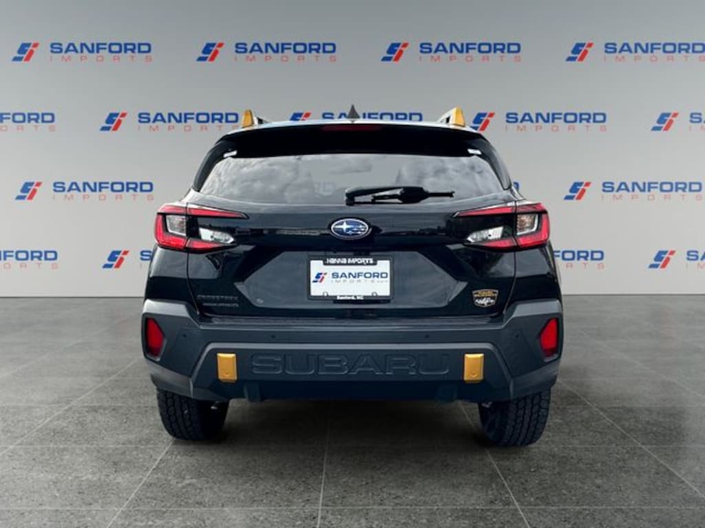 Equipped with Crosstrek Mirror Package (Auto-Dimming Exterior Mirror w/Approach Light and Auto-Dimming Mirror w/Compass & HomeLink), Standard Model, 4-Wheel Disc Brakes, 4.11 Axle Ratio, 6 Speakers, ABS brakes, Air Conditioning, Alloy wheels, AM/FM radio: SiriusXM, Anti-whiplash front head restraints, Auto High-beam Headlights, Automatic temperature control, Brake assist, Bumpers: body-color, Driver door bin, Driver vanity mirror, Dual front impact airbags, Dual front side impact airbags, Electronic Stability Control, Emergency communication system: STARLINK Safety and Security (Subscription Required), Exterior Parking Camera Rear, Four wheel independent suspension, Front anti-roll bar, Front Bucket Seats, Front Center Armrest, Front dual zone A/C, Front fog lights, Front reading lights, Fully automatic headlights, Heated door mirrors, Heated Front Bucket Seats, Heated front seats, Illuminated entry, Knee airbag, Leather Shift Knob, Low tire pressure warning, Occupant sensing airbag, Outside temperature display, Overhead airbag, Overhead console, Panic alarm, Passenger door bin, Passenger vanity mirror, Power door mirrors, Power steering, Power windows, Radio data system, Radio: Subaru STARLINK 11.6" Multimedia Plus Sys, Rear anti-roll bar, Rear Bumper Cover - Wilderness, Rear seat center armrest, Rear window defroster, Rear window wiper, Remote keyless entry, Security system, Speed control, Speed-sensing steering, Split folding rear seat, Spoiler, STARLINK/Apple CarPlay/Android Auto, Steering wheel mounted audio controls, Tachometer, Telescoping steering wheel, Tilt steering wheel, Traction control, Trip computer, Turn signal indicator mirrors, Variably intermittent wipers, Wheels: 17" x 7.0J Matte Black Aluminum Alloy, and Wilderness StarTex Upholstery.