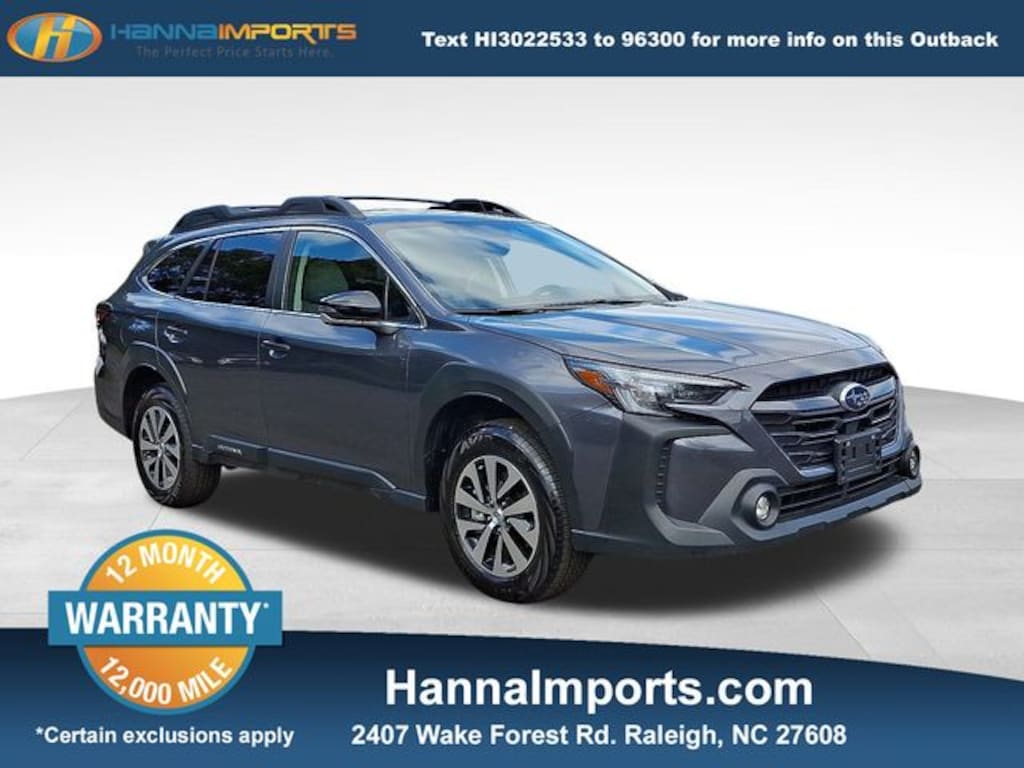 Why shop with Hanna Imports? We specialize in hand-selecting top-quality used cars, trucks, and SUVs for drivers across Raleigh, Durham, Cary, Chapel Hill, and the greater Triangle area of North Carolina. Our massive selection of 1,000+ vehicles on our Raleigh lot is carefully curated to include the most sought-after models, all priced below market value. We believe in transparency and efficiencyâ"our vehicles are aggressively priced from the start, which means no haggling, no hassle, and no wasted time. The price you see is our absolute best price. Whether you're coming from Wake Forest, Apex, Garner, or anywhere in central NC, weâre committed to making your car-buying experience smooth, affordable, and enjoyable. Come see why Hanna Imports is one of the most trusted used car dealerships in North Carolina! Used Subaru Outback in Raleigh. Used Subaru Outback in North Carolina, BSD & RCTA & Keyless Access & Push Button Start (Blind Spot Detection (BSD), Hands-Free Power Rear Gate, Keyless Access w/Push Button Start, Power Moonroof, and Rear Cross Traffic Alert (RCTA)), Popular Package #1A (All-Weather Floor Liners, Auto-Dimming Mirror w/Compass & HomeLink, and Rear Bumper Cover), Outback Premium, Exterior Parking Camera Rear, Remote keyless entry, 4-Wheel Disc Brakes, 6 Speakers, ABS brakes, Air Conditioning, Alloy wheels, AM/FM radio: SiriusXM with 360L, Auto High-beam Headlights, Automatic temperature control, Brake assist, Bumpers: body-color, Cloth Upholstery, Driver door bin, Driver vanity mirror, Dual front impact airbags, Dual front side impact airbags, Electronic Stability Control, Four wheel independent suspension, Front anti-roll bar, Front Bucket Seats, Front Center Armrest w/Storage, Front dual zone A/C, Front fog lights, Front reading lights, Fully automatic headlights, Heated door mirrors, Heated Front Bucket Seats, Heated front seats, Illuminated entry, Knee airbag, Leather Shift Knob, Leather steering wheel, Low tire pressure warning, Occupant sensing airbag, Outside temperature display, Overhead airbag, Overhead console, Panic alarm, Passenger door bin, Passenger vanity mirror, Power door mirrors, Power driver seat, Power steering, Power windows, Rear anti-roll bar, Rear Seat Back Protector, Rear seat center armrest, Rear window defroster, Rear window wiper, Roof rack, Security system, Speed control, Speed-sensing steering, Split folding rear seat, Spoiler, Steering wheel mounted audio controls, Tachometer, Telescoping steering wheel, Tilt steering wheel, Traction control, Trip computer, Turn signal indicator mirrors, Variably intermittent wipers, and Wheels: 17" x 7J Black Aluminum-Alloy.