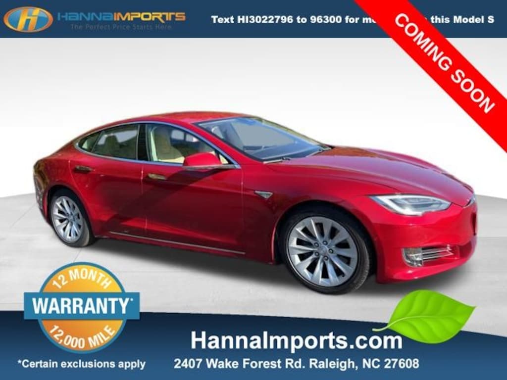 Why shop with Hanna Imports? We specialize in hand-selecting top-quality used cars, trucks, and SUVs for drivers across Raleigh, Durham, Cary, Chapel Hill, and the greater Triangle area of North Carolina. Our massive selection of 1,000+ vehicles on our Raleigh lot is carefully curated to include the most sought-after models, all priced below market value. We believe in transparency and efficiencyâ"our vehicles are aggressively priced from the start, which means no haggling, no hassle, and no wasted time. The price you see is our absolute best price. Whether you're coming from Wake Forest, Apex, Garner, or anywhere in central NC, weâre committed to making your car-buying experience smooth, affordable, and enjoyable. Come see why Hanna Imports is one of the most trusted used car dealerships in North Carolina! Used Tesla Model S in Raleigh. Used Tesla Model S in North Carolina, Model S 70D, AWD, Exterior Parking Camera Rear, Navigation System, 4-Wheel Disc Brakes, 7 Speakers, ABS brakes, Air Conditioning, Alloy wheels, AM/FM radio, Auto-dimming door mirrors, Automatic temperature control, Brake assist, Bumpers: body-color, Compass, Delay-off headlights, Driver vanity mirror, Dual front impact airbags, Dual front side impact airbags, Electronic Stability Control, Four wheel independent suspension, Front anti-roll bar, Front Bucket Seats, Front Center Armrest, Front dual zone A/C, Front reading lights, Fully automatic headlights, Garage door transmitter: Homelink, Genuine wood console insert, Genuine wood dashboard insert, Hand-Wrapped Microfiber & Synthetic Leather, Heated door mirrors, Heated front seats, Heated Front Seats w/Memory, Illuminated entry, Knee airbag, Leather steering wheel, Low tire pressure warning, Memory seat, Occupant sensing airbag, Outside temperature display, Overhead airbag, Passenger vanity mirror, Power door mirrors, Power driver seat, Power passenger seat, Power steering, Power windows, Radio data system, Radio: AM/FM/HD/USB w/17" Capacitive Touch Screen, Rain sensing wipers, Rear anti-roll bar, Rear reading lights, Rear window defroster, Remote keyless entry, Security system, Speed control, Speed-sensing steering, Speed-Sensitive Wipers, Split folding rear seat, Spoiler, Steering wheel memory, Steering wheel mounted A/C controls, Steering wheel mounted audio controls, Telescoping steering wheel, Tilt steering wheel, Traction control, Trip computer, Variably intermittent wipers, and Wheels: 19" Silver Slipstream Aluminum Alloy.