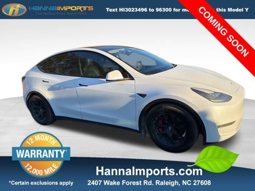 Why shop with Hanna Imports? We specialize in hand-selecting top-quality used cars, trucks, and SUVs for drivers across Raleigh, Durham, Cary, Chapel Hill, and the greater Triangle area of North Carolina. Our massive selection of 1,000+ vehicles on our Raleigh lot is carefully curated to include the most sought-after models, all priced below market value. We believe in transparency and efficiencyâ"our vehicles are aggressively priced from the start, which means no haggling, no hassle, and no wasted time. The price you see is our absolute best price. Whether you're coming from Wake Forest, Apex, Garner, or anywhere in central NC, weâre committed to making your car-buying experience smooth, affordable, and enjoyable. Come see why Hanna Imports is one of the most trusted used car dealerships in North Carolina! Used Tesla Model Y in Raleigh. Used Tesla Model Y in North Carolina, Model Y Performance, AWD, Exterior Parking Camera Rear, Heated front seats, Heated rear seats, Lane Departure Warning System, Power Liftgate, Remote keyless entry, 15 Speakers, 4-Wheel Disc Brakes, 5 Seat Interior, 9.0 Axle Ratio, ABS brakes, Air Conditioning, Alloy wheels, Auto High-beam Headlights, Auto tilt-away steering wheel, Auto-dimming door mirrors, Auto-dimming Rear-View mirror, Automatic temperature control, Brake assist, Bumpers: body-color, Compass, Delay-off headlights, Driver door bin, Driver vanity mirror, Dual front impact airbags, Dual front side impact airbags, Electronic Stability Control, Four wheel independent suspension, Front anti-roll bar, Front Bucket Seats, Front Center Armrest, Front dual zone A/C, Front fog lights, Front reading lights, Fully automatic headlights, Genuine wood dashboard insert, Heated door mirrors, Heated steering wheel, Illuminated entry, Knee airbag, Low tire pressure warning, Memory seat, Navigation System, Occupant sensing airbag, Outside temperature display, Overhead airbag, Passenger door bin, Passenger vanity mirror, Power door mirrors, Power driver seat, Power passenger seat, Power steering, Power windows, Premium Audio System, Premium Seat Trim, Radio data system, Rain sensing wipers, Rear reading lights, Rear seat center armrest, Rear window defroster, Security system, Speed control, Speed-sensing steering, Split folding rear seat, Spoiler, Steering wheel memory, Steering wheel mounted A/C controls, Steering wheel mounted audio controls, Telescoping steering wheel, Tilt steering wheel, Traction control, Trip computer, Variably intermittent wipers, and Wheels: 21" x 9.5 Fr & 21" x 10.5 Rr Uberturbine.