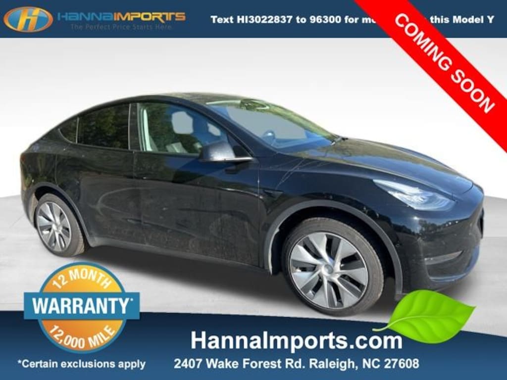 Why shop with Hanna Imports? We specialize in hand-selecting top-quality used cars, trucks, and SUVs for drivers across Raleigh, Durham, Cary, Chapel Hill, and the greater Triangle area of North Carolina. Our massive selection of 1,000+ vehicles on our Raleigh lot is carefully curated to include the most sought-after models, all priced below market value. We believe in transparency and efficiencyâ"our vehicles are aggressively priced from the start, which means no haggling, no hassle, and no wasted time. The price you see is our absolute best price. Whether you're coming from Wake Forest, Apex, Garner, or anywhere in central NC, weâre committed to making your car-buying experience smooth, affordable, and enjoyable. Come see why Hanna Imports is one of the most trusted used car dealerships in North Carolina! Used Tesla Model Y in Raleigh. Used Tesla Model Y in North Carolina, Model Y Standard Range, Exterior Parking Camera Rear, Lane Departure Warning System, Navigation System, Power Liftgate, Remote keyless entry, 15 Speakers, 4-Wheel Disc Brakes, 5 Seat Interior, 9.0 Axle Ratio, ABS brakes, Air Conditioning, Alloy wheels, Auto High-beam Headlights, Auto tilt-away steering wheel, Auto-dimming door mirrors, Auto-dimming Rear-View mirror, Automatic temperature control, Brake assist, Bumpers: body-color, Cloth Seat Trim, Compass, Delay-off headlights, Driver door bin, Driver vanity mirror, Dual front impact airbags, Dual front side impact airbags, Electronic Stability Control, Four wheel independent suspension, Front anti-roll bar, Front Bucket Seats, Front Center Armrest, Front dual zone A/C, Front fog lights, Front reading lights, Fully automatic headlights, Genuine wood dashboard insert, Heated door mirrors, Heated front seats, Heated rear seats, Heated steering wheel, Illuminated entry, Knee airbag, Low tire pressure warning, Memory seat, Occupant sensing airbag, Outside temperature display, Overhead airbag, Passenger door bin, Passenger vanity mirror, Power door mirrors, Power driver seat, Power passenger seat, Power steering, Power windows, Premium Audio System, Radio data system, Rain sensing wipers, Rear reading lights, Rear seat center armrest, Rear window defroster, Security system, Speed control, Speed-sensing steering, Split folding rear seat, Steering wheel memory, Steering wheel mounted A/C controls, Steering wheel mounted audio controls, Telescoping steering wheel, Tilt steering wheel, Traction control, Trip computer, Variably intermittent wipers, and Wheels: 19" x 9.5" Gemini.