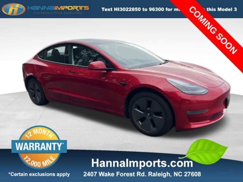 Why shop with Hanna Imports? We specialize in hand-selecting top-quality used cars, trucks, and SUVs for drivers across Raleigh, Durham, Cary, Chapel Hill, and the greater Triangle area of North Carolina. Our massive selection of 1,000+ vehicles on our Raleigh lot is carefully curated to include the most sought-after models, all priced below market value. We believe in transparency and efficiencyâ"our vehicles are aggressively priced from the start, which means no haggling, no hassle, and no wasted time. The price you see is our absolute best price. Whether you're coming from Wake Forest, Apex, Garner, or anywhere in central NC, weâre committed to making your car-buying experience smooth, affordable, and enjoyable. Come see why Hanna Imports is one of the most trusted used car dealerships in North Carolina! Used Tesla Model 3 in Raleigh. Used Tesla Model 3 in North Carolina, Model 3 Long Range, AWD, Exterior Parking Camera Rear, Heated front seats, Heated rear seats, Lane Departure Warning System, Navigation System, 14 Speakers, 4-Wheel Disc Brakes, ABS brakes, Air Conditioning, Alloy wheels, Audio memory, Auto High-beam Headlights, Auto-dimming door mirrors, Auto-dimming Rear-View mirror, Automatic temperature control, Brake assist, Bumpers: body-color, Compass, Delay-off headlights, Driver door bin, Driver vanity mirror, Dual front impact airbags, Dual front side impact airbags, Electronic Stability Control, Four wheel independent suspension, Front anti-roll bar, Front Bucket Seats, Front Center Armrest, Front dual zone A/C, Front fog lights, Front reading lights, Fully automatic headlights, Genuine wood dashboard insert, Heated door mirrors, Heated steering wheel, HVAC memory, Illuminated entry, Knee airbag, Low tire pressure warning, Memory seat, Occupant sensing airbag, Outside temperature display, Overhead airbag, Passenger door bin, Passenger vanity mirror, Power door mirrors, Power driver seat, Power passenger seat, Power steering, Power windows, Premium Audio System, Premium Heated Front Bucket Seats, Premium Seat Trim, Radio data system, Rain sensing wipers, Rear reading lights, Rear seat center armrest, Rear window defroster, Security system, Speed control, Speed-sensing steering, Split folding rear seat, Steering wheel memory, Steering wheel mounted A/C controls, Steering wheel mounted audio controls, Telescoping steering wheel, Tilt steering wheel, Traction control, Trip computer, Variably intermittent wipers, and Wheels: 18" x 8.5" Aero.