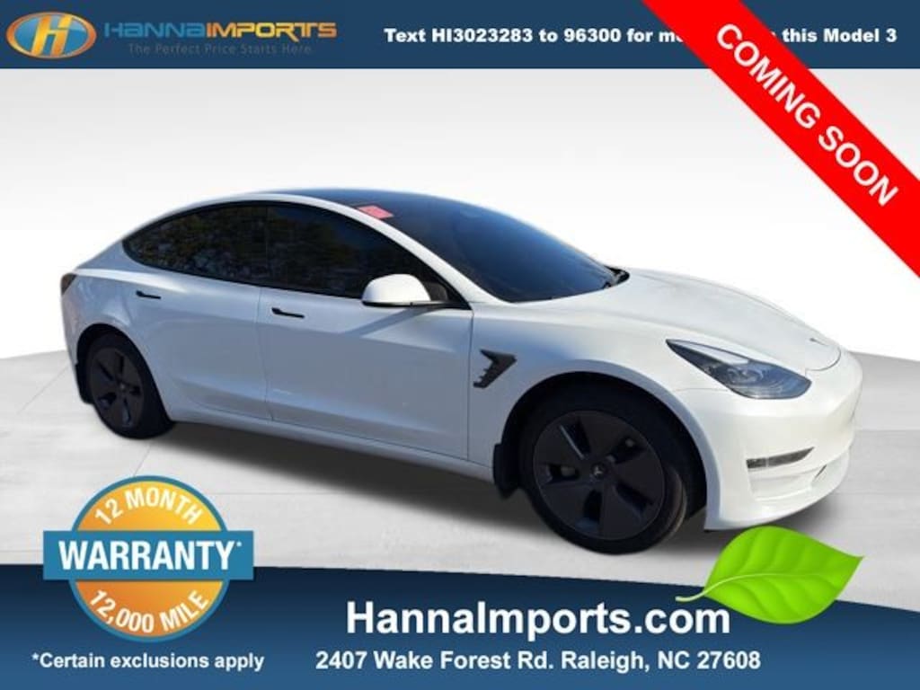 Why shop with Hanna Imports? We specialize in hand-selecting top-quality used cars, trucks, and SUVs for drivers across Raleigh, Durham, Cary, Chapel Hill, and the greater Triangle area of North Carolina. Our massive selection of 1,000+ vehicles on our Raleigh lot is carefully curated to include the most sought-after models, all priced below market value. We believe in transparency and efficiencyâ"our vehicles are aggressively priced from the start, which means no haggling, no hassle, and no wasted time. The price you see is our absolute best price. Whether you're coming from Wake Forest, Apex, Garner, or anywhere in central NC, weâre committed to making your car-buying experience smooth, affordable, and enjoyable. Come see why Hanna Imports is one of the most trusted used car dealerships in North Carolina! Used Tesla Model 3 in Raleigh. Used Tesla Model 3 in North Carolina, Exterior Parking Camera Rear, Heated front seats, Heated rear seats, Lane Departure Warning System, Navigation System, 4-Wheel Disc Brakes, 8 Speakers, ABS brakes, Air Conditioning, Alloy wheels, Audio memory, Auto High-beam Headlights, Auto-dimming door mirrors, Auto-dimming Rear-View mirror, Automatic temperature control, Brake assist, Bumpers: body-color, Compass, Delay-off headlights, Driver door bin, Driver vanity mirror, Dual front impact airbags, Dual front side impact airbags, Electronic Stability Control, Emergency communication system, Four wheel independent suspension, Front anti-roll bar, Front Bucket Seats, Front Center Armrest, Front dual zone A/C, Front reading lights, Fully automatic headlights, Genuine wood dashboard insert, Heated door mirrors, Heated Front Bucket Seats, Heated steering wheel, HVAC memory, Illuminated entry, Knee airbag, Low tire pressure warning, Memory seat, Occupant sensing airbag, Outside temperature display, Overhead airbag, Passenger door bin, Passenger vanity mirror, Power door mirrors, Power driver seat, Power passenger seat, Power steering, Power windows, Premium Seat Trim, Radio data system, Radio: Upgraded Audio System, Rain sensing wipers, Rear reading lights, Rear seat center armrest, Rear window defroster, Security system, Speed control, Speed-sensing steering, Split folding rear seat, Steering wheel memory, Steering wheel mounted A/C controls, Steering wheel mounted audio controls, Telescoping steering wheel, Tilt steering wheel, Traction control, Trip computer, Variably intermittent wipers, and Wheels: 18" x 8.5" Aero.