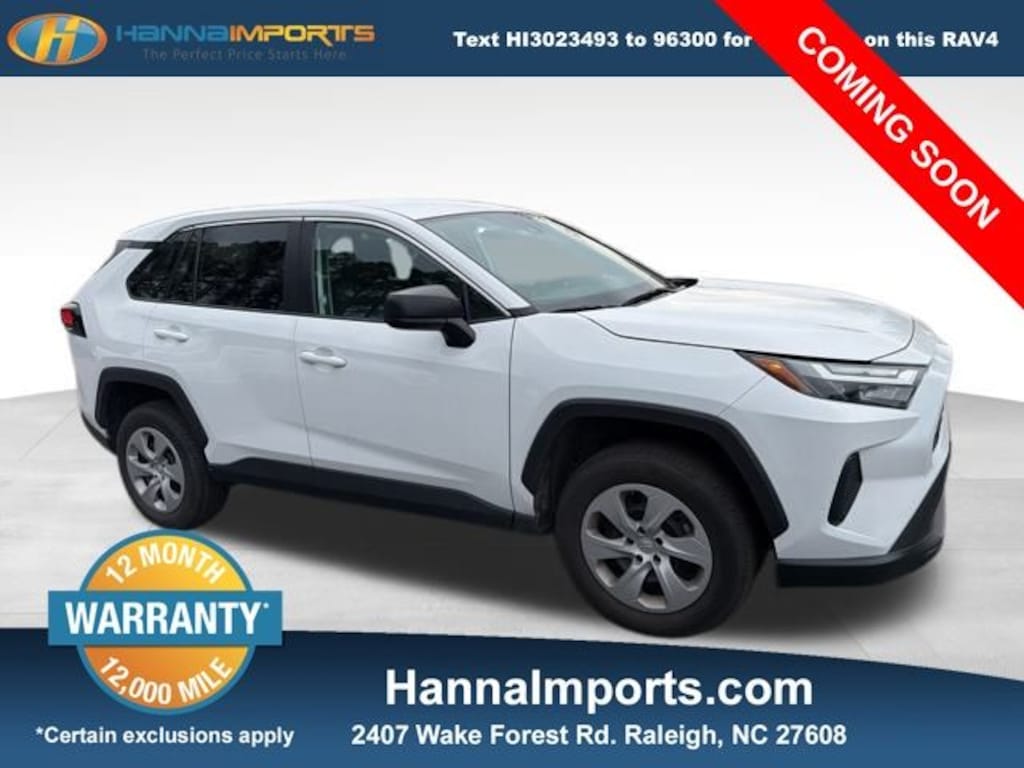Why shop with Hanna Imports? We specialize in hand-selecting top-quality used cars, trucks, and SUVs for drivers across Raleigh, Durham, Cary, Chapel Hill, and the greater Triangle area of North Carolina. Our massive selection of 1,000+ vehicles on our Raleigh lot is carefully curated to include the most sought-after models, all priced below market value. We believe in transparency and efficiencyâ"our vehicles are aggressively priced from the start, which means no haggling, no hassle, and no wasted time. The price you see is our absolute best price. Whether you're coming from Wake Forest, Apex, Garner, or anywhere in central NC, weâre committed to making your car-buying experience smooth, affordable, and enjoyable. Come see why Hanna Imports is one of the most trusted used car dealerships in North Carolina! Used Toyota RAV4 in Raleigh. Used Toyota RAV4 in North Carolina, RAV4 LE, AWD, Black w/Fabric Seat Trim, Exterior Parking Camera Rear, Remote keyless entry, 17" Steel Wheels, 4-Wheel Disc Brakes, 6 Speakers, ABS brakes, Air Conditioning, AM/FM radio: SiriusXM, Auto High-beam Headlights, Axle Ratio: 3.177, Brake assist, Bumpers: body-color, Driver door bin, Driver vanity mirror, Dual front impact airbags, Dual front side impact airbags, Electronic Stability Control, Emergency communication system: Safety Connect (10-year trial), Fabric Seat Trim, Four wheel independent suspension, Front anti-roll bar, Front Bucket Seats, Front Center Armrest, Front reading lights, Illuminated entry, Knee airbag, Low tire pressure warning, Occupant sensing airbag, Outside temperature display, Overhead airbag, Overhead console, Panic alarm, Passenger door bin, Passenger vanity mirror, Power door mirrors, Power steering, Power windows, Radio data system, Radio: AM/FM/XM Audio System, Rear anti-roll bar, Rear seat center armrest, Rear window defroster, Rear window wiper, Speed control, Speed-sensing steering, Split folding rear seat, Spoiler, Steering wheel mounted audio controls, Tachometer, Telescoping steering wheel, Tilt steering wheel, Traction control, and Trip computer.