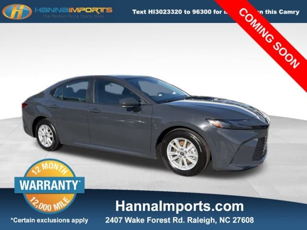 Why shop with Hanna Imports? We specialize in hand-selecting top-quality used cars, trucks, and SUVs for drivers across Raleigh, Durham, Cary, Chapel Hill, and the greater Triangle area of North Carolina. Our massive selection of 1,000+ vehicles on our Raleigh lot is carefully curated to include the most sought-after models, all priced below market value. We believe in transparency and efficiencyâ"our vehicles are aggressively priced from the start, which means no haggling, no hassle, and no wasted time. The price you see is our absolute best price. Whether you're coming from Wake Forest, Apex, Garner, or anywhere in central NC, weâre committed to making your car-buying experience smooth, affordable, and enjoyable. Come see why Hanna Imports is one of the most trusted used car dealerships in North Carolina! Used Toyota Camry in Raleigh. Used Toyota Camry in North Carolina, Camry LE, 2.5L 4-Cylinder 16V DOHC, Black w/Fabric Seat Trim, ABS brakes, Active Cruise Control, Alloy wheels, Electronic Stability Control, Exterior Parking Camera Rear, Front dual zone A/C, Heated door mirrors, Illuminated entry, Low tire pressure warning, Remote keyless entry, Traction control, 4-Wheel Disc Brakes, 6 Speakers, Air Conditioning, AM/FM radio: SiriusXM, Apple CarPlay/Android Auto, Auto High-beam Headlights, Automatic temperature control, Brake assist, Bumpers: body-color, Delay-off headlights, Driver door bin, Driver vanity mirror, Dual front impact airbags, Dual front side impact airbags, Emergency communication system: Safety Connect (up to 10-year trial subscription), Fabric Seat Trim, Four wheel independent suspension, Front anti-roll bar, Front Bucket Seats, Front Center Armrest, Front reading lights, Fully automatic headlights, Knee airbag, Occupant sensing airbag, Outside temperature display, Overhead airbag, Overhead console, Panic alarm, Passenger door bin, Passenger vanity mirror, Power door mirrors, Power steering, Power windows, Radio data system, Radio: Toyota Audio Multimedia w/8" Touchscreen, Rear anti-roll bar, Rear seat center armrest, Rear side impact airbag, Rear window defroster, Security system, Speed control, Speed-sensing steering, Split folding rear seat, Steering wheel mounted audio controls, Telescoping steering wheel, Tilt steering wheel, Trip computer, Turn signal indicator mirrors, Variably intermittent wipers, and Wheels: 16" Silver-Finished Alloy.
