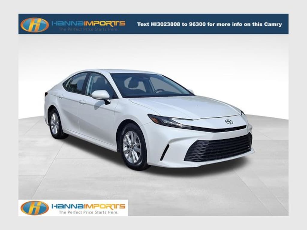 Why shop with Hanna Imports? We specialize in hand-selecting top-quality used cars, trucks, and SUVs for drivers across Raleigh, Durham, Cary, Chapel Hill, and the greater Triangle area of North Carolina. Our massive selection of 1,000+ vehicles on our Raleigh lot is carefully curated to include the most sought-after models, all priced below market value. We believe in transparency and efficiencyâ"our vehicles are aggressively priced from the start, which means no haggling, no hassle, and no wasted time. The price you see is our absolute best price. Whether you're coming from Wake Forest, Apex, Garner, or anywhere in central NC, weâre committed to making your car-buying experience smooth, affordable, and enjoyable. Come see why Hanna Imports is one of the most trusted used car dealerships in North Carolina! Used Toyota Camry in Raleigh. Used Toyota Camry in North Carolina, Camry LE, 2.5L 4-Cylinder 16V DOHC, Black w/Fabric Seat Trim, Exterior Parking Camera Rear, Remote keyless entry, 4-Wheel Disc Brakes, 6 Speakers, ABS brakes, Air Conditioning, Alloy wheels, AM/FM radio: SiriusXM, Apple CarPlay/Android Auto, Auto High-beam Headlights, Automatic temperature control, Brake assist, Bumpers: body-color, Delay-off headlights, Driver door bin, Driver vanity mirror, Dual front impact airbags, Dual front side impact airbags, Electronic Stability Control, Emergency communication system: Safety Connect (up to 10-year trial subscription), Fabric Seat Trim, Four wheel independent suspension, Front anti-roll bar, Front Bucket Seats, Front Center Armrest, Front dual zone A/C, Front reading lights, Fully automatic headlights, Heated door mirrors, Illuminated entry, Knee airbag, Low tire pressure warning, Occupant sensing airbag, Outside temperature display, Overhead airbag, Overhead console, Panic alarm, Passenger door bin, Passenger vanity mirror, Power door mirrors, Power steering, Power windows, Radio data system, Radio: Toyota Audio Multimedia w/8" Touchscreen, Rear anti-roll bar, Rear seat center armrest, Rear side impact airbag, Rear window defroster, Security system, Speed control, Speed-sensing steering, Split folding rear seat, Steering wheel mounted audio controls, Telescoping steering wheel, Tilt steering wheel, Traction control, Trip computer, Turn signal indicator mirrors, Variably intermittent wipers, and Wheels: 16" Silver-Finished Alloy.