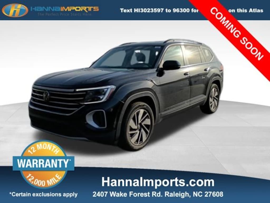 Why shop with Hanna Imports? We specialize in hand-selecting top-quality used cars, trucks, and SUVs for drivers across Raleigh, Durham, Cary, Chapel Hill, and the greater Triangle area of North Carolina. Our massive selection of 1,000+ vehicles on our Raleigh lot is carefully curated to include the most sought-after models, all priced below market value. We believe in transparency and efficiencyâ"our vehicles are aggressively priced from the start, which means no haggling, no hassle, and no wasted time. The price you see is our absolute best price. Whether you're coming from Wake Forest, Apex, Garner, or anywhere in central NC, weâre committed to making your car-buying experience smooth, affordable, and enjoyable. Come see why Hanna Imports is one of the most trusted used car dealerships in North Carolina! Used Volkswagen Atlas in Raleigh. Used Volkswagen Atlas in North Carolina, Atlas 2.0T SE w/Technology, Exterior Parking Camera Rear, Heated front seats, Power Liftgate, Remote keyless entry, 3.60 Axle Ratio, 3rd row seats: split-bench, 4-Wheel Disc Brakes, 6 Speakers, ABS brakes, Air Conditioning, Alloy wheels, AM/FM radio: SiriusXM with 360L, Auto-dimming Rear-View mirror, Automatic temperature control, Brake assist, Bumpers: body-color, Compass, Delay-off headlights, Driver door bin, Driver vanity mirror, Dual front impact airbags, Dual front side impact airbags, Electronic Stability Control, Emergency communication system: VW Car-Net Safe & Secure 5-year, Four wheel independent suspension, Front anti-roll bar, Front Bucket Seats, Front Center Armrest, Front dual zone A/C, Front fog lights, Front reading lights, Fully automatic headlights, Heated door mirrors, Heated steering wheel, Heated/Actively Ventilated Front Bucket Seats, Illuminated entry, Low tire pressure warning, Occupant sensing airbag, Outside temperature display, Overhead airbag, Overhead console, Panic alarm, Passenger door bin, Passenger vanity mirror, Perforated V-Tex Leatherette Seating Surfaces, Power door mirrors, Power driver seat, Power steering, Power windows, Radio data system, Radio: MIB3 Composition Media, Rain sensing wipers, Rear air conditioning, Rear anti-roll bar, Rear reading lights, Rear seat center armrest, Rear window defroster, Rear window wiper, Security system, Speed control, Speed-sensing steering, Split folding rear seat, Spoiler, Standard Suspension, Steering wheel mounted audio controls, Tachometer, Telescoping steering wheel, Tilt steering wheel, Traction control, Trip computer, Turn signal indicator mirrors, Variably intermittent wipers, Ventilated front seats, and Wheels: 20" 2-Tone Machined Alloy.